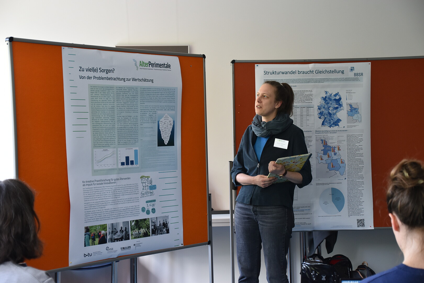 Insgesamt 70 Teilnehmende aus unterschiedlichen wissenschaftlichen Disziplinen diskutierten am zweiten Tag in sechs Panels u.a. zu Fragen von sozialer Innovation(sfähigkeit), Transdisziplinarität und Partizipation in der Forschung, zu „Werkzeugen“ von transformativer Wissenschaft und Regionalentwicklung, zu ethischen Implikationen oder zu Geschlech­terperspektiven.