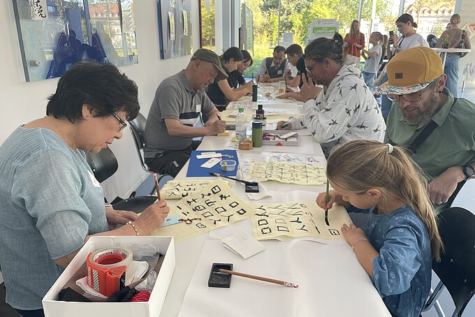 Neben den wissenschaftlichen und wirtschaftlichen Aspekten bot der Taiwan-Tag auch ein breites kulturelles Programm. Besucherinnen und Besucher aller Altersgruppen konnten die Vielfalt taiwanischer Tees bei einer Tee-Verkostung entdecken – besonders der traditionelle Bubble Tea war ein Highlight, das großen Zuspruch fand. Auch der Kalligrafie-Workshop wurde gut besucht und bot den Teilnehmenden die Möglichkeit, die Kunst der traditionellen Schriftzeichen hautnah zu erleben. Zudem gab es eine Bücherausstellung und die Möglichkeit, taiwanische Delikatessen zu genießen. Diese Aktivitäten boten einen lebendigen Einblick in die Kultur Taiwans und wurden von den Besucherinnen und Besuchern des Taiwan-Tages begeistert angenommen.