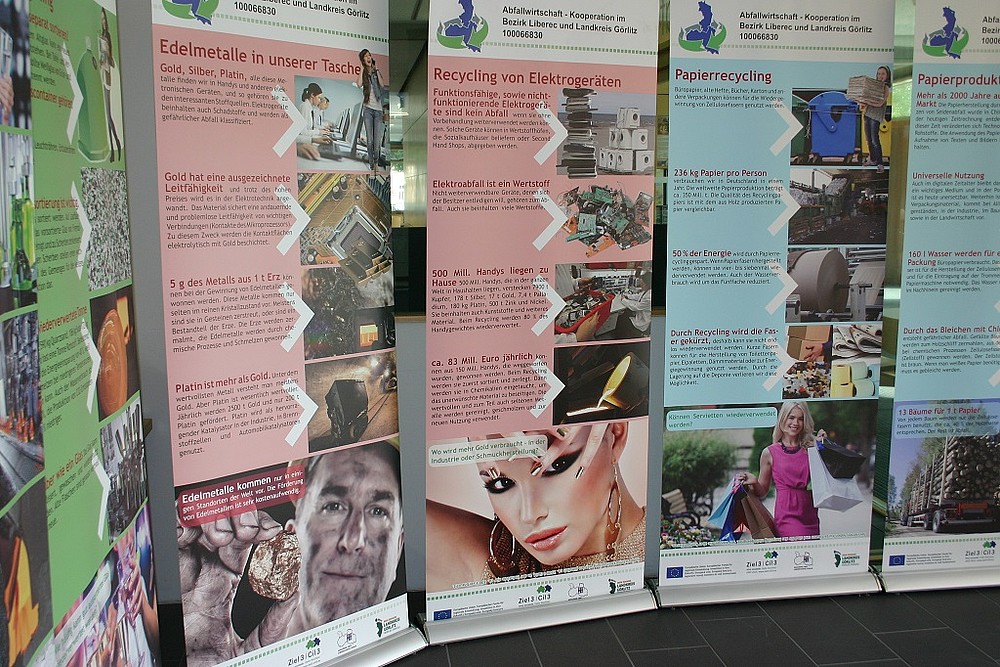 Nun ist die Ausstellung in der Hochschulbibliothek in Zittau vom 26. September bis 16. Dezember 2016 zu sehen. In der Präsentation wird dargestellt, dass Wertstoffe wie Papier, Glas, Altkleider, Leichtverpackungen und Schrott durch technische Verfahren wieder in Rohstoffe umgewandelt werden und als Grundlage zur Herstellung hochwertiger Produkte dienen.
