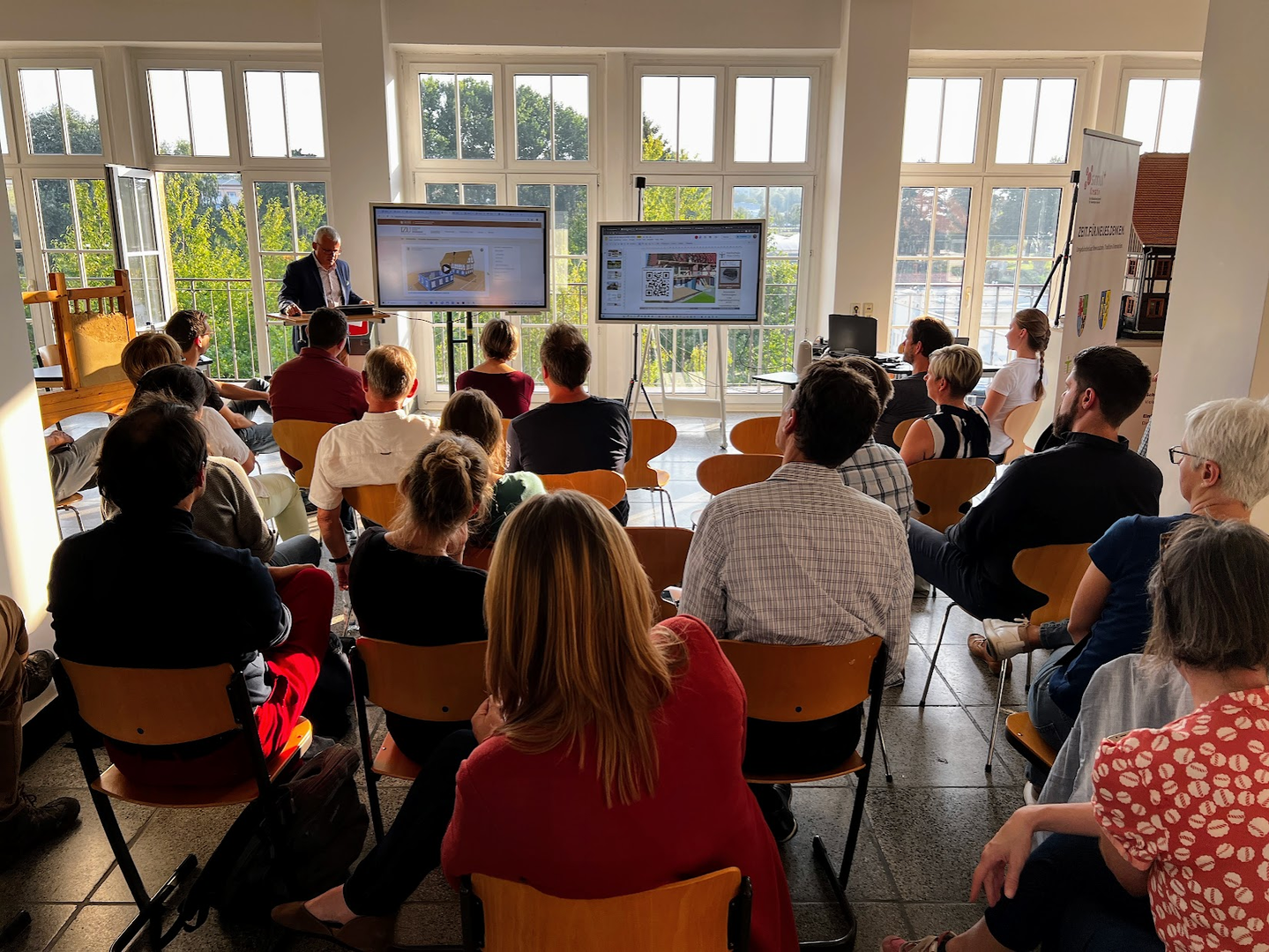 Am 18. September 2024 lud das Informationszentrum Umgebindehaus (IZU) zu einem Vortragsabend an der Hochschule Zittau/Görlitz ein. Im Rahmen des Projekts "ZEIT.FÜR.NEUES.DENKEN." drehte sich alles um das Thema "Innovative Technologien in der Umgebindehausforschung". Unsere Gäste folgten der Einladung und erlebten einen spannenden Abend, der die Zukunft der Umgebindehäuser im digitalen Zeitalter beleuchtete.