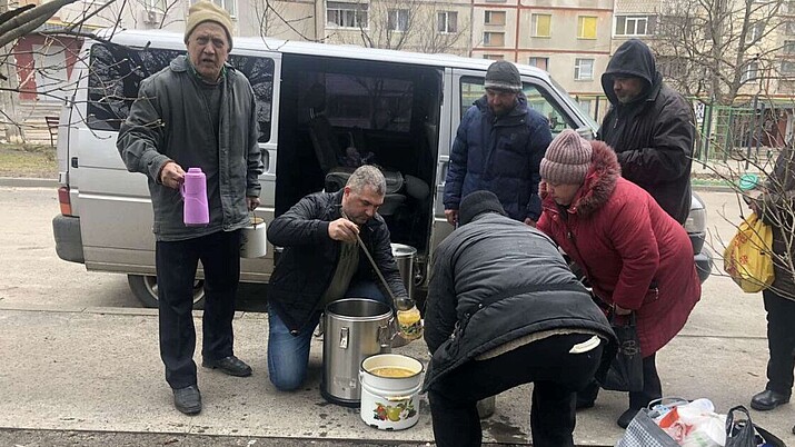 Pfarrer Vladislav bringt warmes Essen, andere Lebensmittel, Medikamente und Kleidung. „Schon bei unserem ersten Treffen vor fünf Jahren war er ständig für Bedürftige unterwegs, brachte ein regelmäßiges Mittagessen, kümmerte sich um medizinische Versorgung. Wir möchten Vladislav gerade jetzt besonders, aber auch langfristig finanziell unterstützen.“