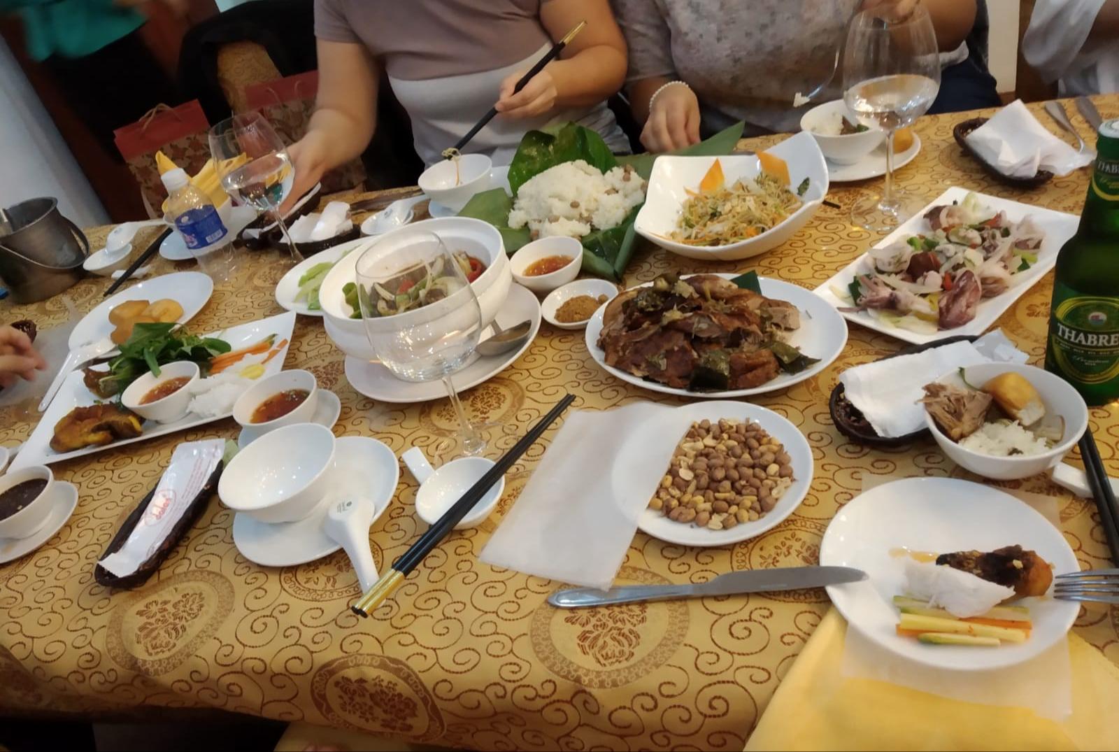 …durch die Nacht! Okay, durch den späten Nachmittag, tanzten wir auf der Hoang Long Tourism 2 über den Ma River. Was mit einer unterhaltsamen Karaoke-Show seitens der vietnamesischen Studenten begann, endete schnell in einer absoluten Helene Fischer Eskalation. Wir können mit Stolz sagen, dass Helene sich jetzt über 14 neue Fans aus Vietnam freuen kann. Nachdem wir uns ordentlich ausgepowert hatten, futterten wir uns durch das Abendessen. Wie immer war der Tisch voll mit den verschiedensten Gerichten. Zur Abwechslung waren neben dem obligatorischen Sticky Rice auch Steak, Pommes und Toastbrot dabei. Noch ein kleiner „Fun“- Fact am Rande: über den Ma River führt die sogenannte Suicide-Bridge. Der deutsche Architekt der Brücke beging nach ihrem Einbruch Selbstmord.So Freunde, das war’s für heute von uns. Morgen geht es dann 9 Stunden mit dem Bus naaach… Wer errät’s?