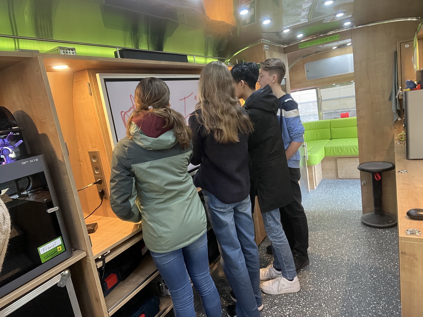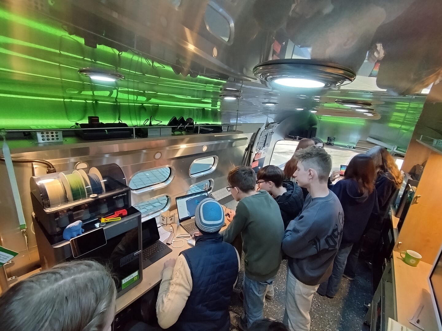 ZukLOS gliedert sich in vier Handlungsfelder: die Juniorakademie Zittau, das Experimentierhaus Görlitz, mobile und dezentrale Lernorte sowie Campus4You. Die Entwicklung der mobilen Lernorte, zu denen auch das hier eingesetzte mobile Labor gehört, zielt darauf ab, Wissenschaft und Forschung direkt zu den Menschen zu bringen. Mit der an Bord befindlichen Digitaltechnik, einem Lasercutter und einem 3D-Drucker, konnten die Schülerinnen und Schüler ihren Prototypen ein ansprechendes Design verleihen und sogar benötigte Bauteile direkt vor Ort drucken. Bei der Umsetzung ihrer Ideen wurden die Schülerinnen und Schüler von engagierten Hochschulmitarbeitern und Orest Lytvyn, der seinen Bundesfreiwilligendienst an der HSZG absolviert, tatkräftig unterstützt.