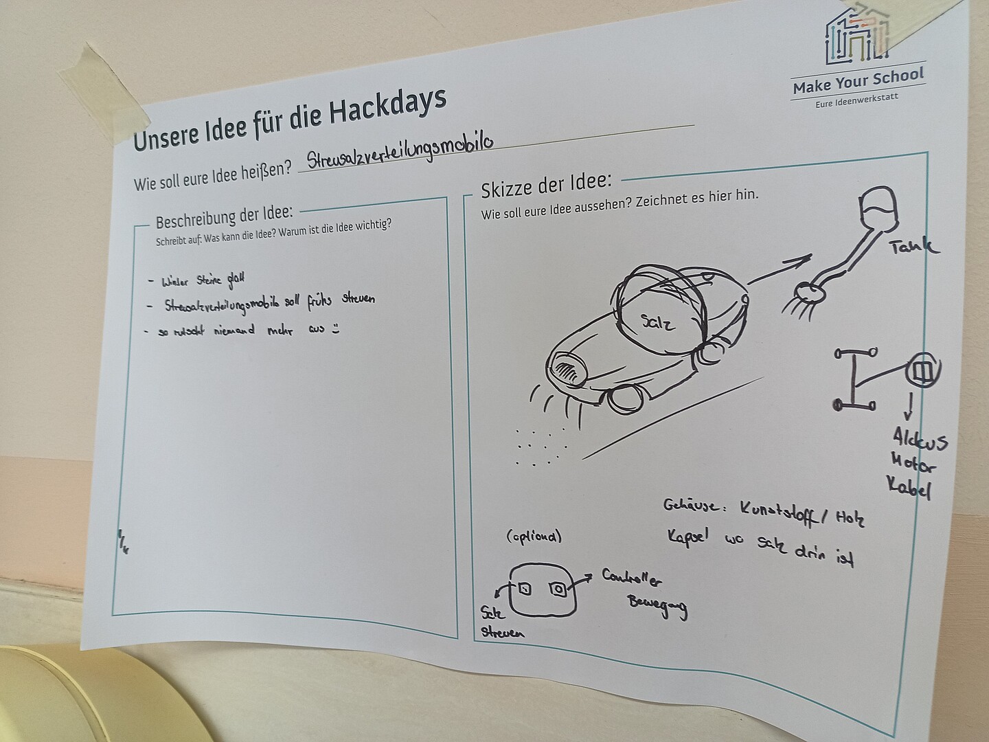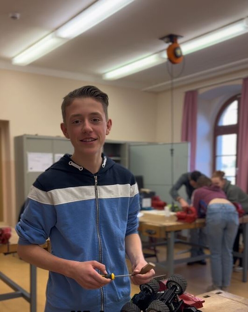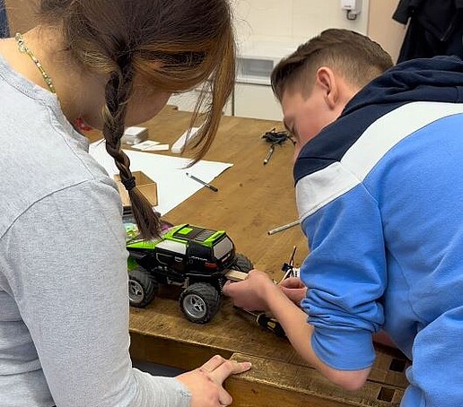 „Wir bauen ein Streusalzfahrzeug für unsere Schule!“ – Mit leuchtenden Augen und voller Tatendrang verkündeten dies fünf Schülerinnen und Schüler am Ende des ersten Tages eines ganz besonderen Projekts am Christian-Weise-Gymnasium Zittau. Gemeinsam mit ihren Klassenkameradinnen und Klassenkameraden hatten sie überlegt, wie sie ihren Schulalltag verbessern könnten, und wollten ihre Ideen sofort in die Tat umsetzen. Nun saßen sie zusammen und erstellten eine detaillierte Materialliste, damit ihr „Hack“, der Bau ihres Prototyps, bis zur Präsentation in nur zwei weiteren Tagen erfolgreich abgeschlossen werden konnte.