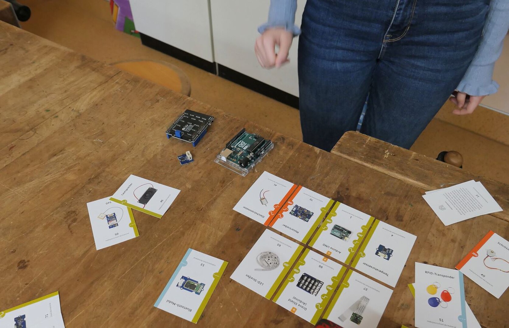 Drei Tage voller kreativen Tüftelns, die darauf abzielten, die Schule ein Stück besser zu machen, sorgten bei Schülerinnen und Schülern sowie Lehrkräften gleichermaßen für Begeisterung. Die Hochschule Zittau/Görlitz (HSZG) war mit einem speziellen MINT-Kofferset angereist, das mit Mikrocontrollern, Sensoren und Ausgabegeräten ausgestattet war. So konnte eine andere Schülergruppe beispielsweise den Füllstand eines Müllbehälters messen und durch ein LED-Band anzeigen, das bei vollem Behälter von Grün auf Rot wechselte. Eine andere Gruppe baute einen Sensor unter einen Tisch, der Alarm schlägt, wenn ein Kaugummi angeklebt wird.
