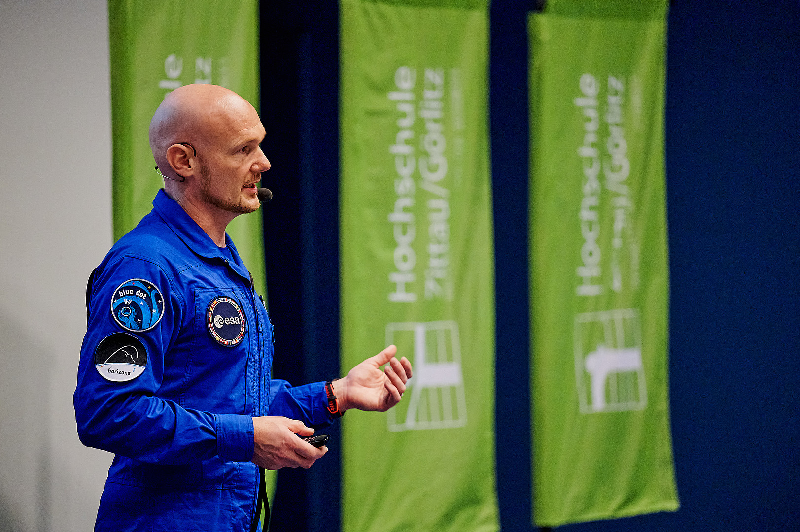 ESA-Astronaut Dr. Alexander Gerst und Missionsleiter Volker Schmid mit Vorlesungen zu Gast an der HSZG