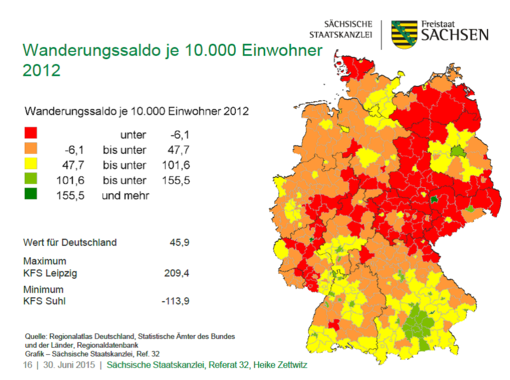 Abb. 3:               Wanderungssaldo 2012. Quelle: Sächsische Staatskanzlei 2015