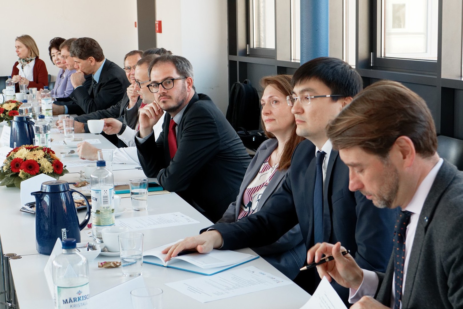 Die Teilnehmer der Veranstaltung wurden von Herrn Cecere, Beauftragter im Auswärtigen Amt für Außenwissenschafts-, Bildungs- und Forschungspolitik und Auswärtige Kulturpolitik begrüßt. Es folgten Grußworte von Herrn Karipov, dem Botschafter der Republik Kasachstan, von Herrn Dr. Geifes, dem Bereichsleiter für Transnationale Bildung und Kooperationsprogramme im Deutschen Akademischen Austauschdienst und Herrn Prof. Höller, dem Leiter des DKU-Projekts. Im weiteren Verlauf dieser Veranstaltung stellte Herr Münch, der Leiter des Referats Hochschulen, Wissenschaft und Forschung; Deutsche Wissenschafts- und Innovationshäuser im Auswärtigen Amt, den deutschen Ansatz einer Wissenschaftsdiplomatie vor. Dieser stieß bei den Anwesenden auf nachhaltige Resonanz.