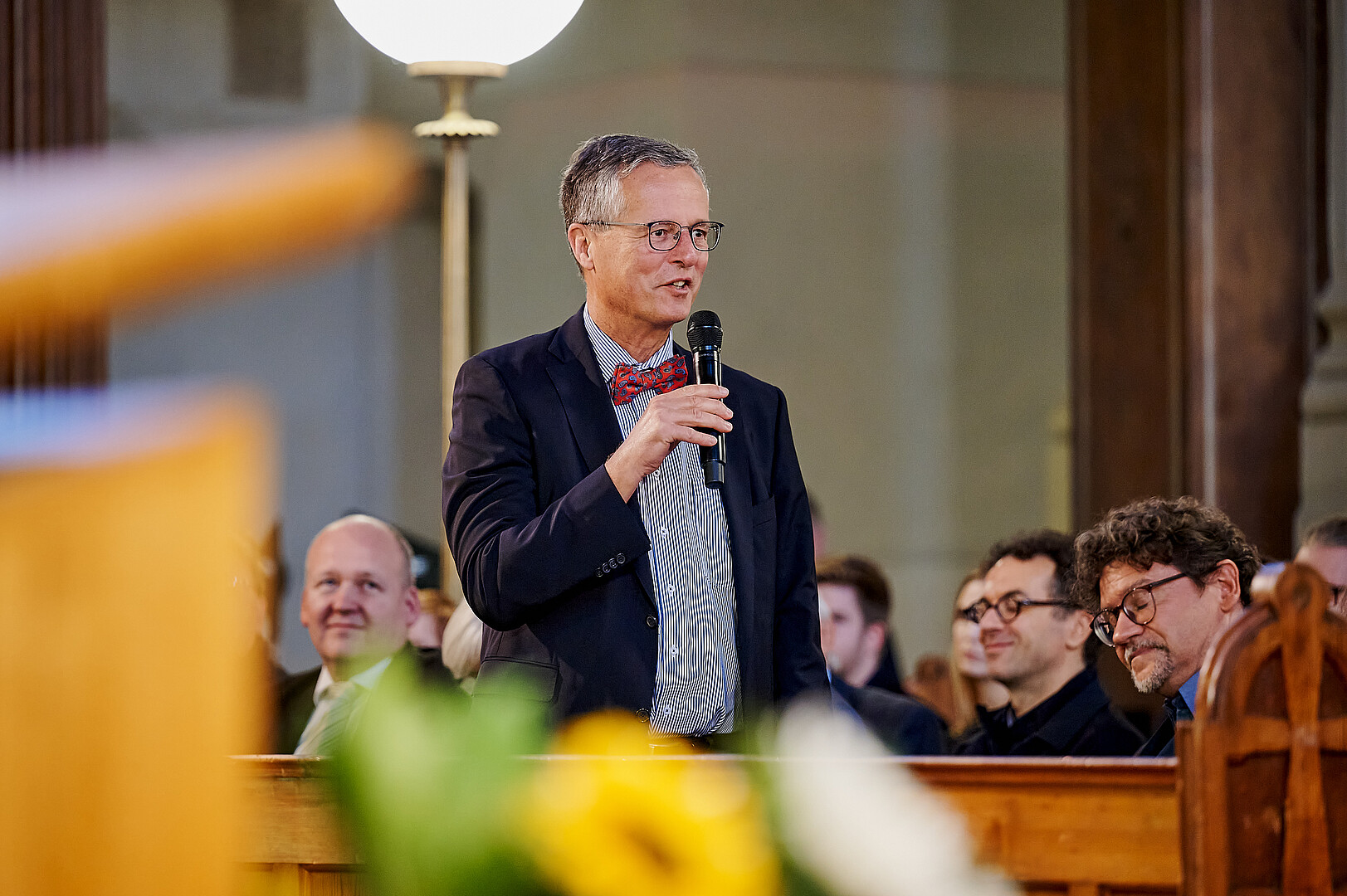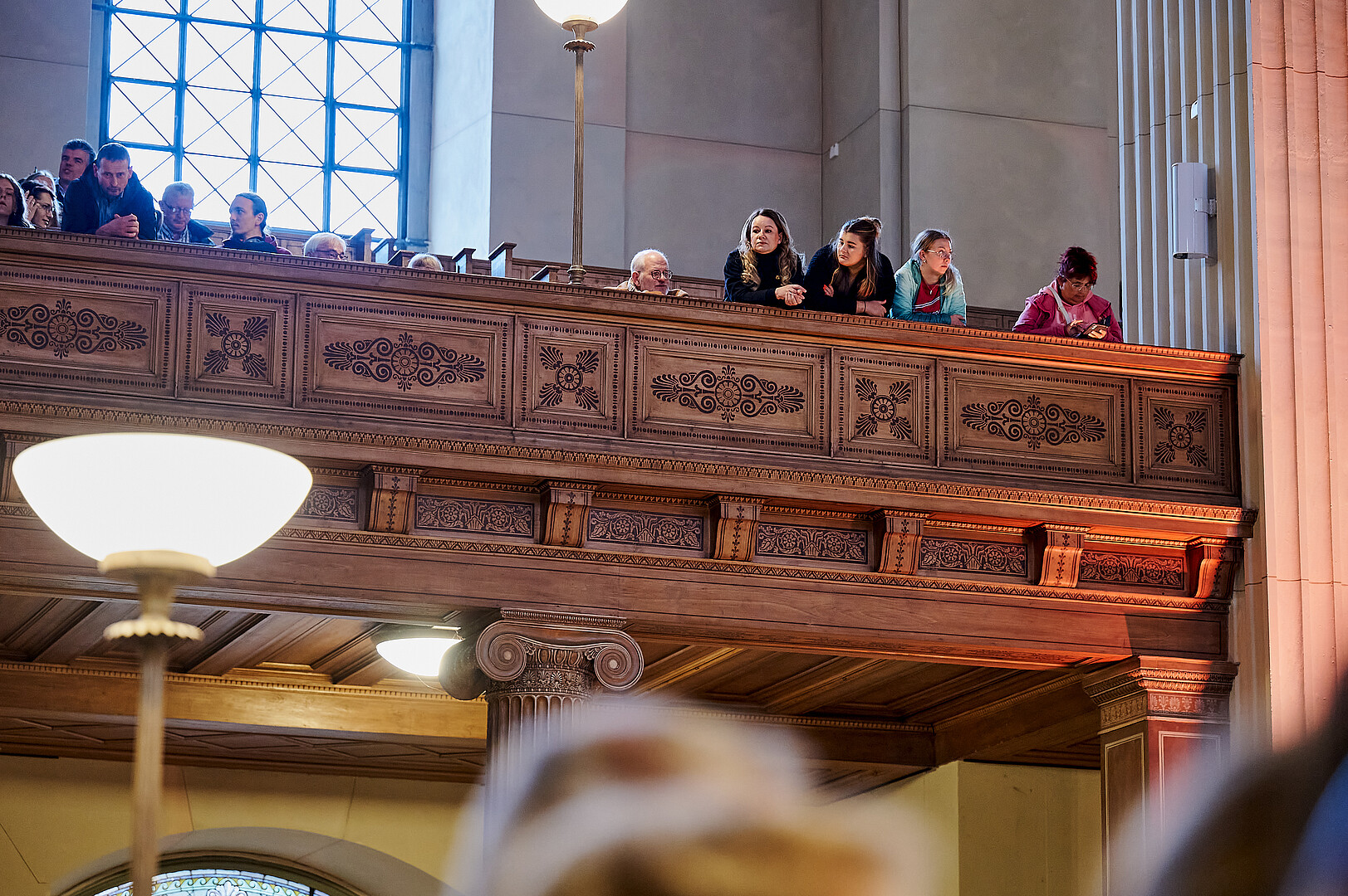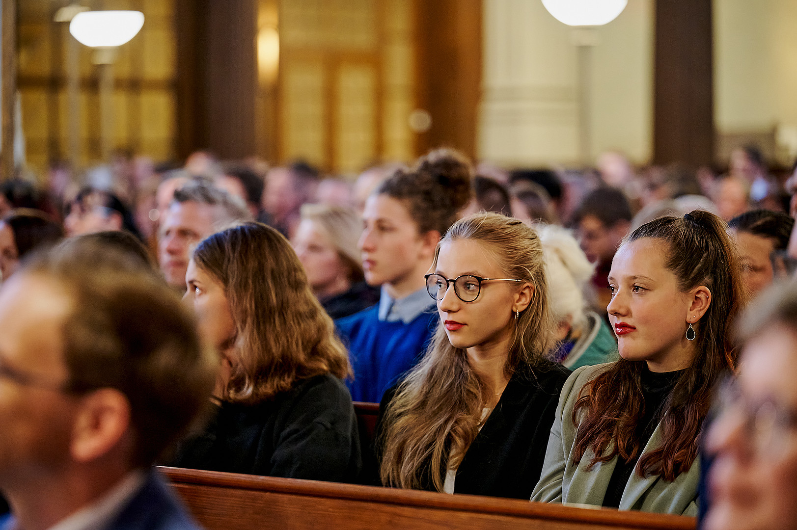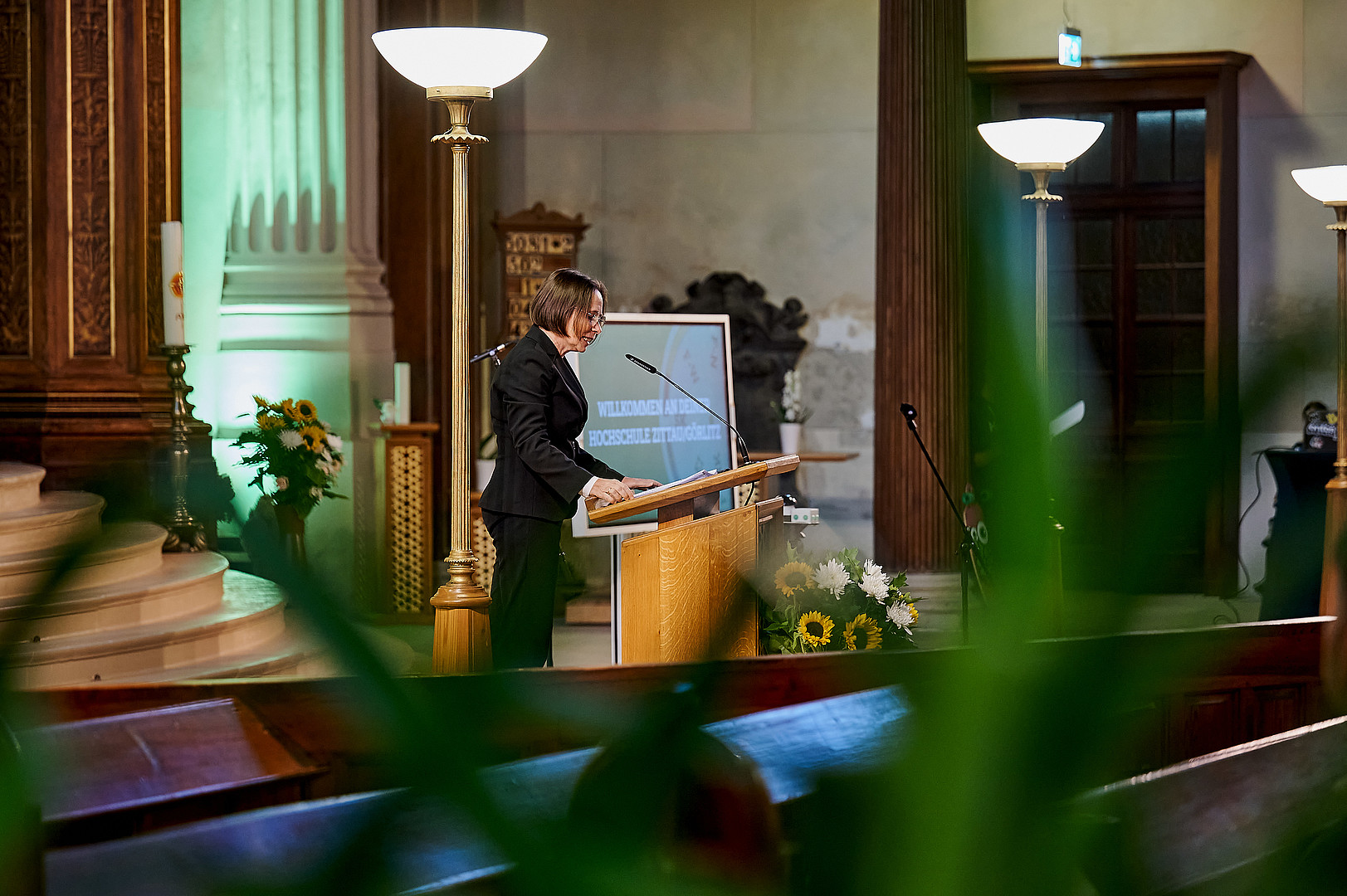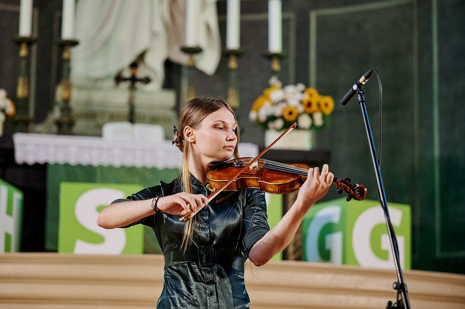 Musikalisch wurde das Programm von der Big-Band Klangfarben umrahmt, die aufgrund des zur Verfügung stehenden Platzes in einer kleineren Besetzung auftrat. Kantor Johannes Dette beindruckte an der Orgel mit fulminanten Klängen, während Kultur und Management-Studentin Romy Wolf das Publikum mit ihrem Geigenspiel nach dem Motto: „Pop-meets-Classic“ verzauberte.