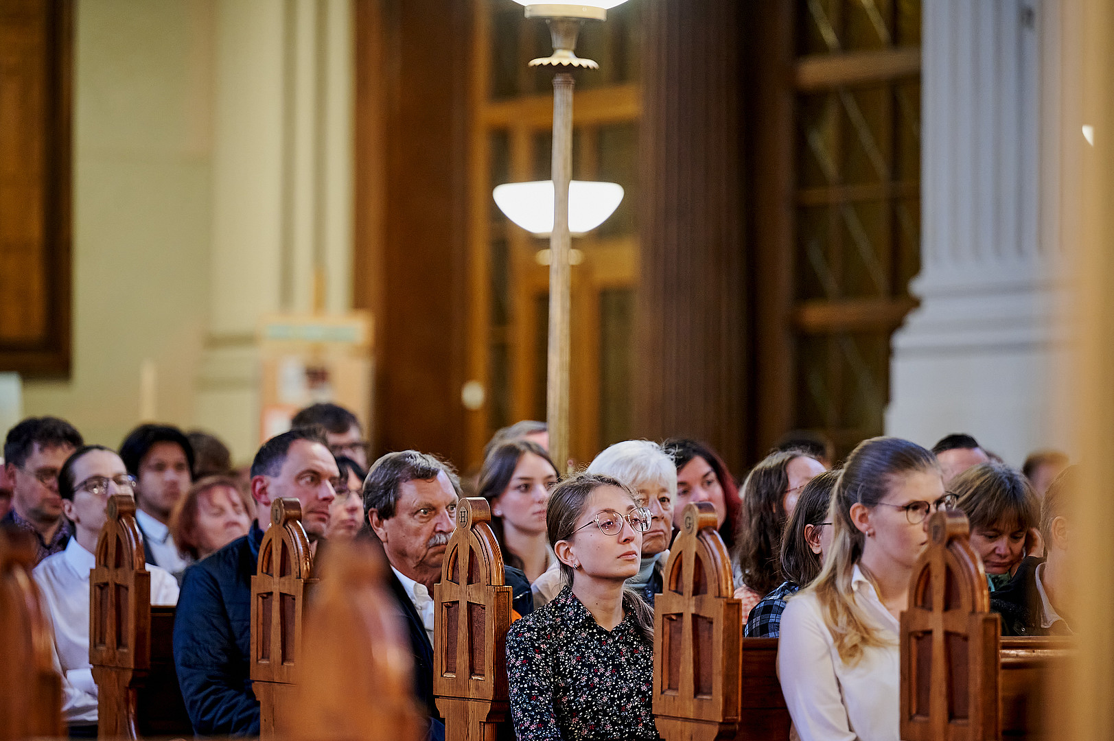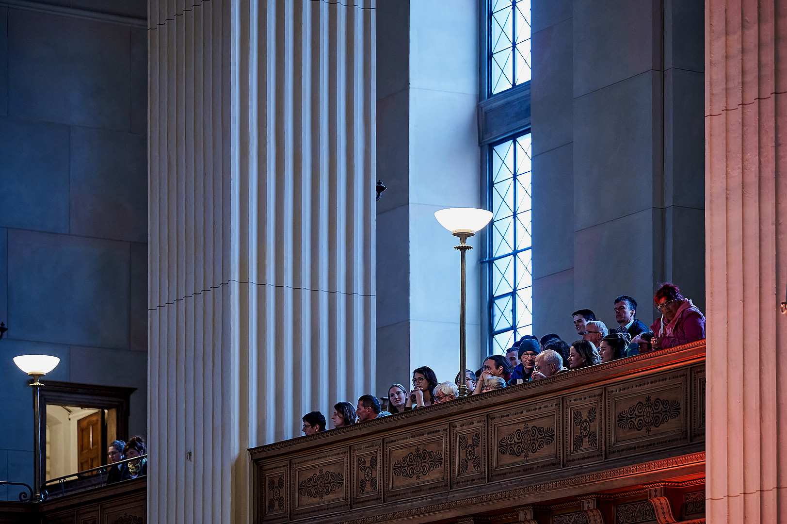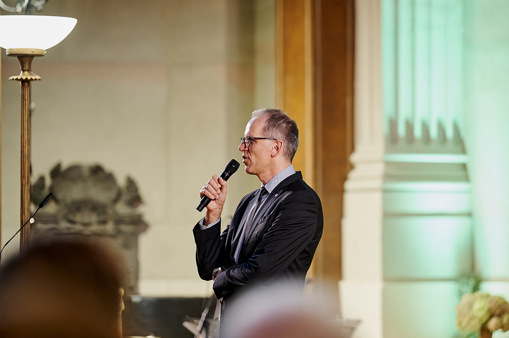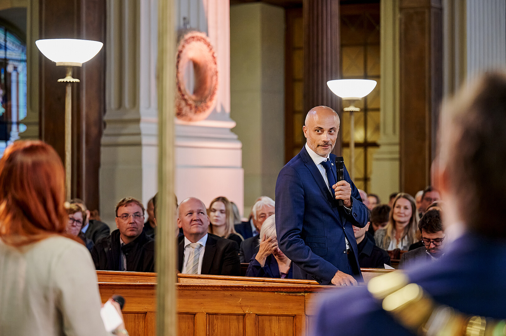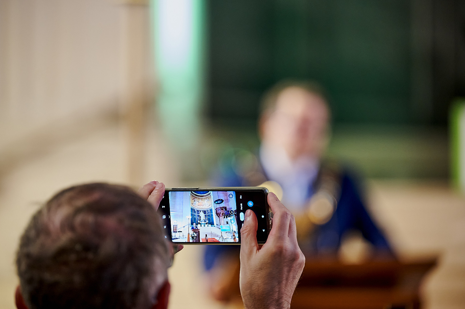Musikalisch wurde das Programm von der Big-Band Klangfarben umrahmt, die aufgrund des zur Verfügung stehenden Platzes in einer kleineren Besetzung auftrat. Kantor Johannes Dette beindruckte an der Orgel mit fulminanten Klängen, während Kultur und Management-Studentin Romy Wolf das Publikum mit ihrem Geigenspiel nach dem Motto: „Pop-meets-Classic“ verzauberte.