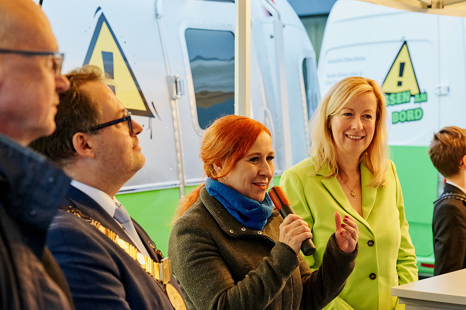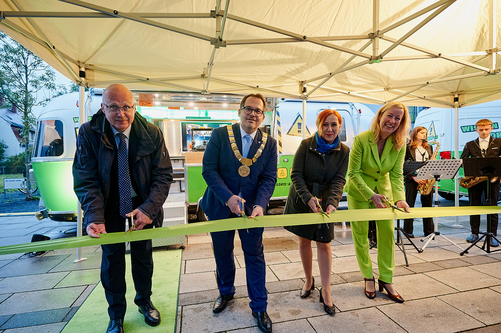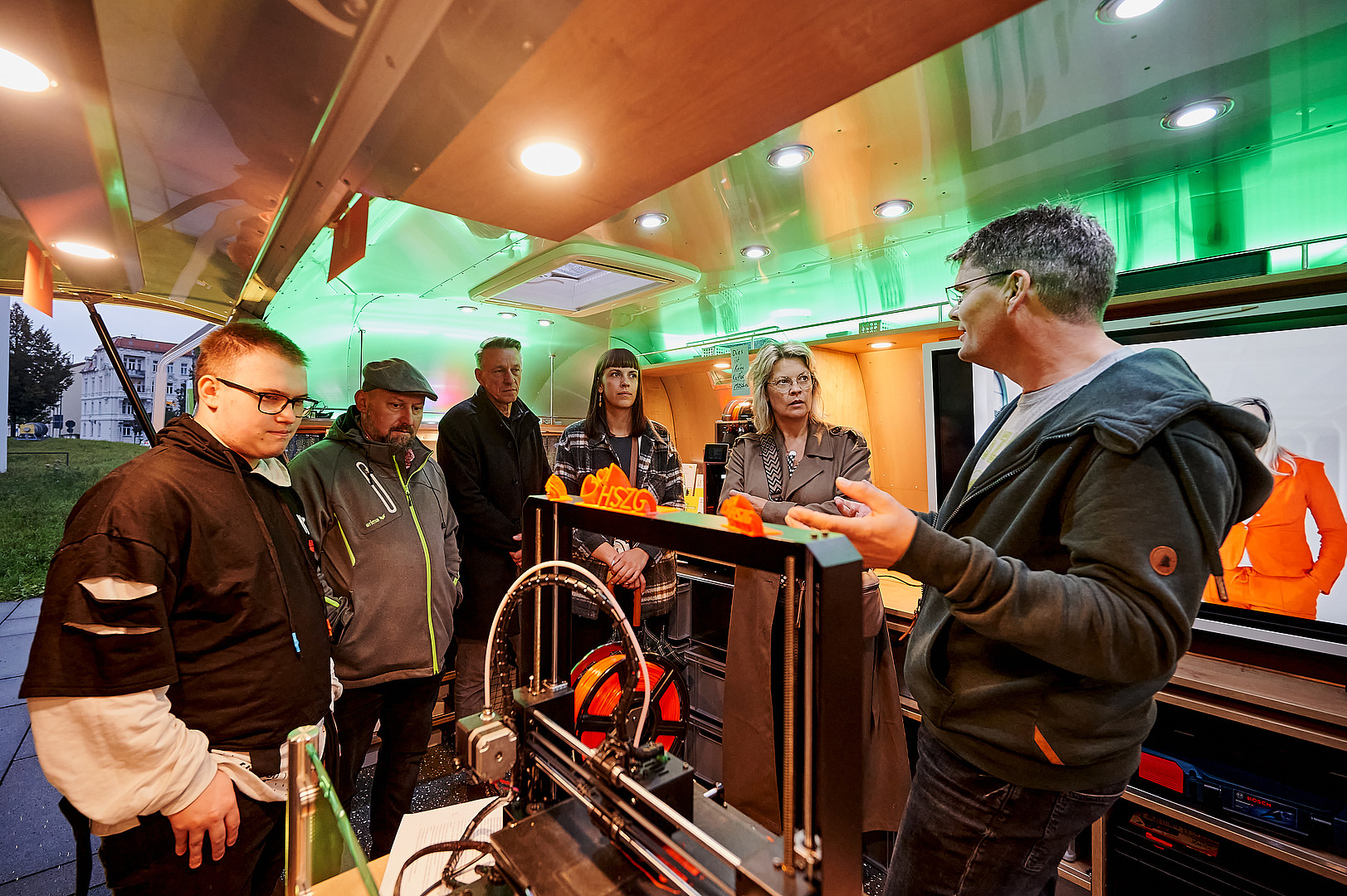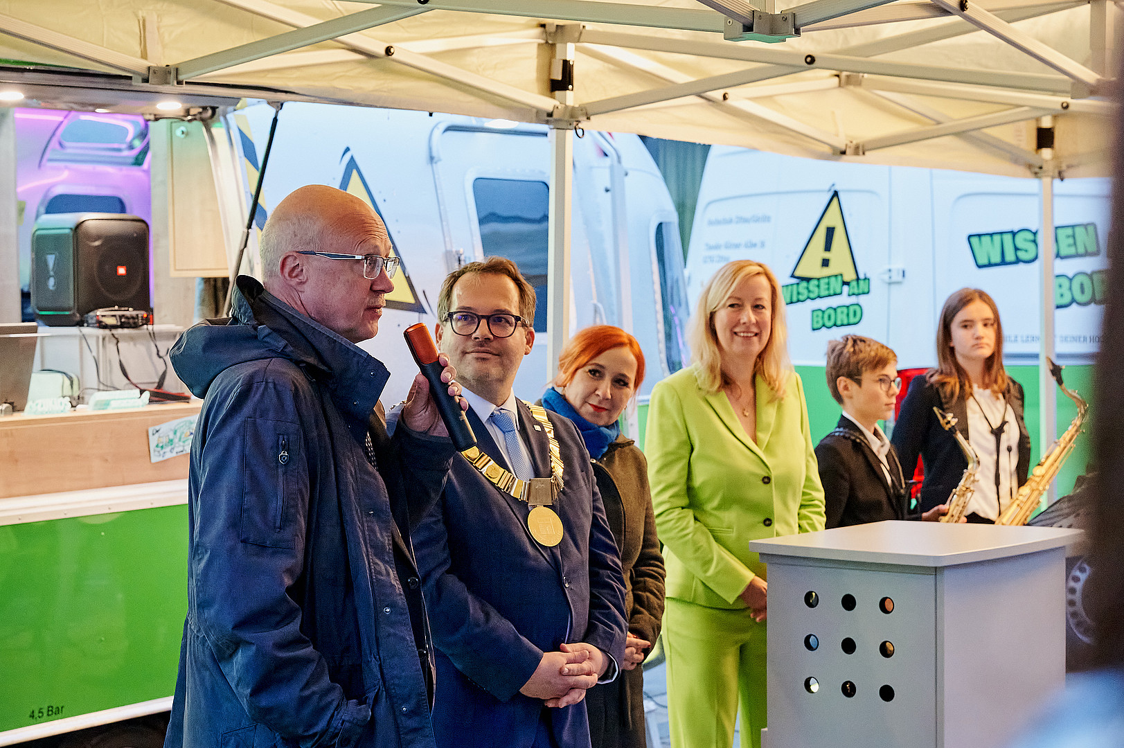 Ein weiteres Highlight stellte dabei die Einweihung des ZukLOS-Anhängers „Mobile Lernorte“ zur Studierendengewinnung im Bereich der MINT-Bildung dar. Die außerschulische Bildungslandschaft der Oberlausitz wird künftig durch das Projekt Zukunftslernort Oberlausitz (ZukLOS) noch stärker als bisher innovative Lernmöglichkeiten im MINT-Bereich bieten, um Jugendliche individuell zu fördern. Der neue Sprinter mit Anhänger wird künftig als dezentrales Angebot Schulen und andere Bildungseinrichtungen ansteuern, um Schüler*innen vor Ort mit vielen On-Board-Experimenten für MINT-Fächer zu begeistern.