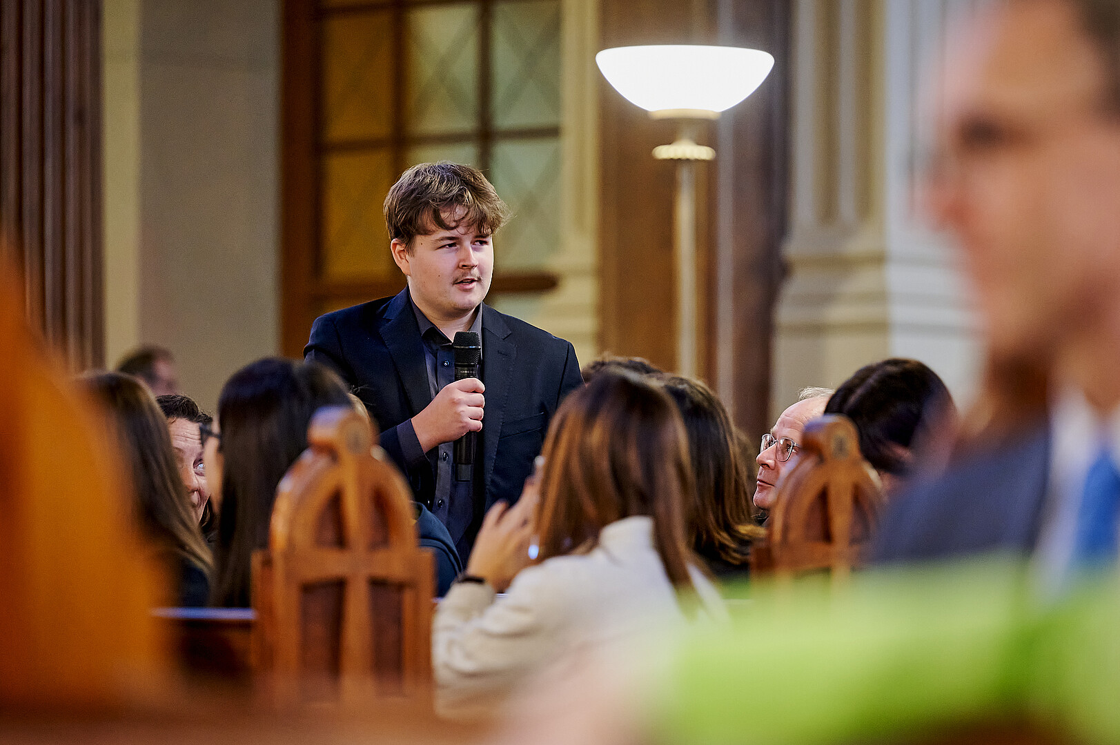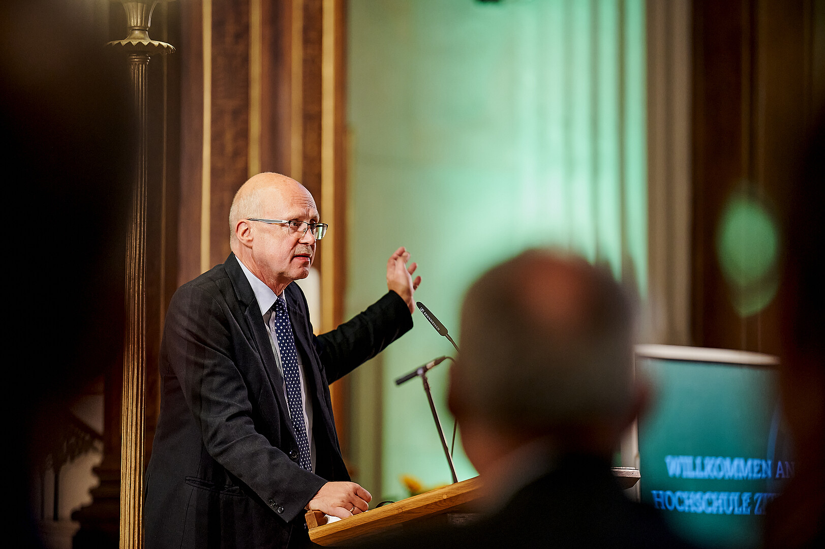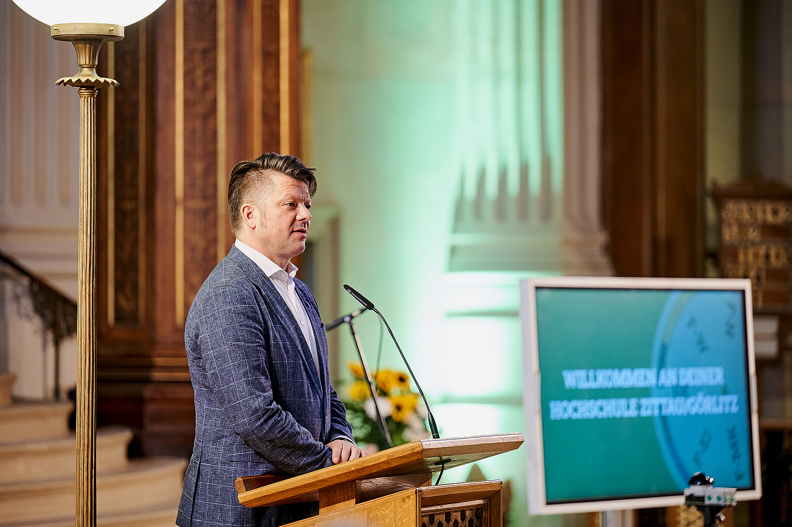 Der Rektor der HSZG Prof. Dr.-Ing. Alexander Kratzsch richtete in seiner anschießenden Festrede motivierende Worte an die Erstsemester: „Mit der heutigen Immatrikulation beginnt für Sie ein neuer Lebensabschnitt. Sie haben sich für ein Studium an einer Hochschule entschieden, die Ihnen nicht nur eine hervorragende akademische Bildung, sondern auch die Möglichkeit bietet, sich persönlich weiterzuentwickeln, Netzwerke zu knüpfen und erlerntes Wissen umgehend in die Praxis umzusetzen. Zum Wohle der Gesellschaft.“ Er betonte dabei, dass sich die Studierenden immer auf das starke Gemeinschaftsgefühl verlassen können, das an der HSZG gelebt wird. Ob Campus-App, Hochschulsport oder Gesundheitsmanagement, der Rektor ermutigte die Studierenden ebenfalls, die vielfältigen Angebote der Hochschule zu nutzen und ihre Zeit aktiv zu gestalten.