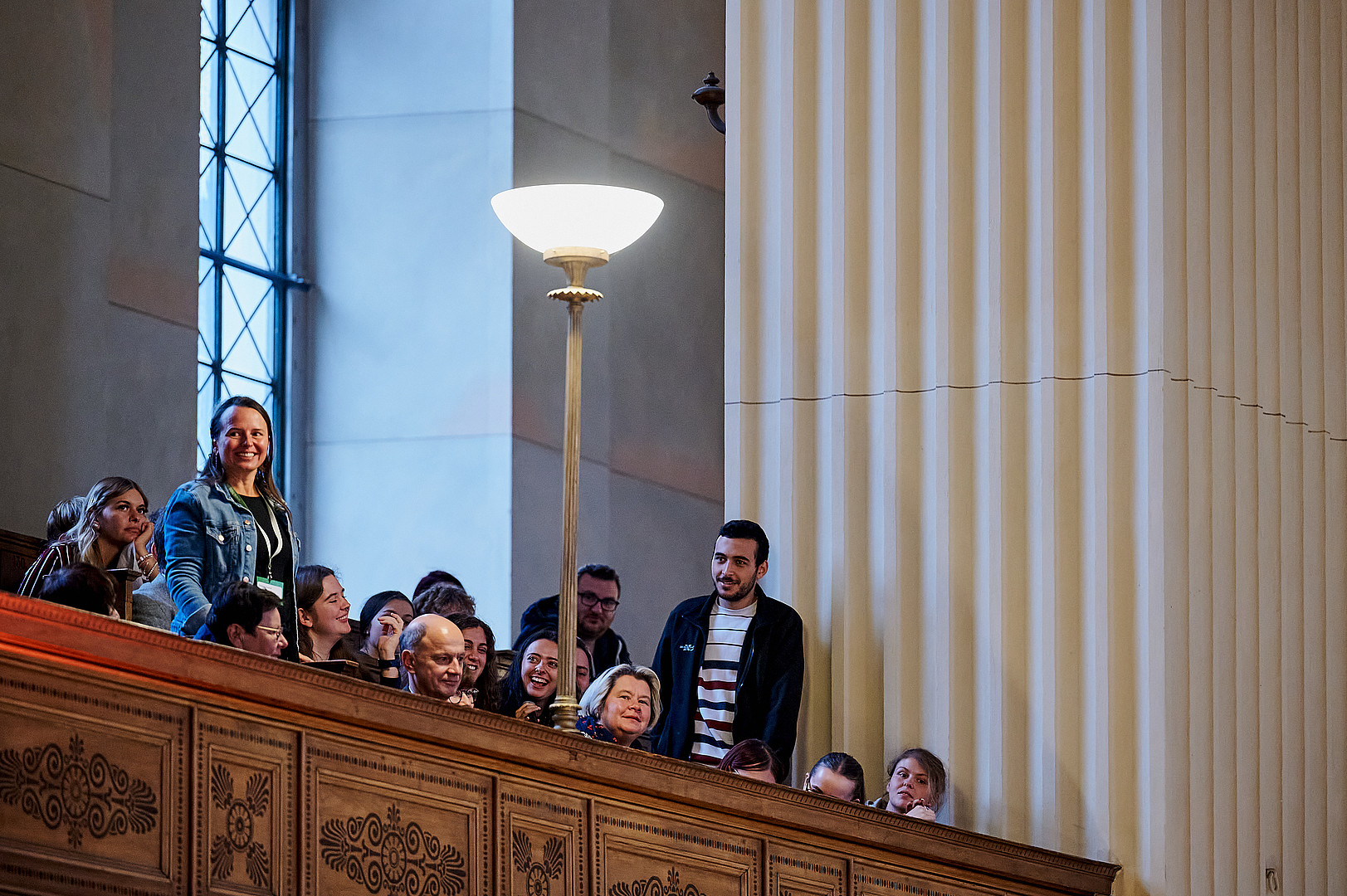 Ab 14:30 Uhr wurden die Gäste dazu eingeladen, die architektonischen Besonderheiten der evangelischen Zittauer Kirche zu bewundern, bei Kaffee und Gebäck erste Kontakte zu knüpfen oder die 266 Stufen hoch zum Johannisturm zu steigen. Von oben bot sich den Gästen ein beeindruckender Blick über die Stadt Zittau, die umliegende Region und natürlich auch auf den Campus der HSZG.