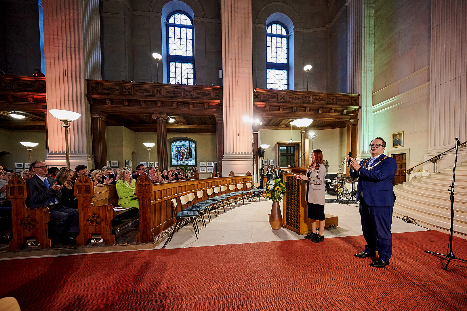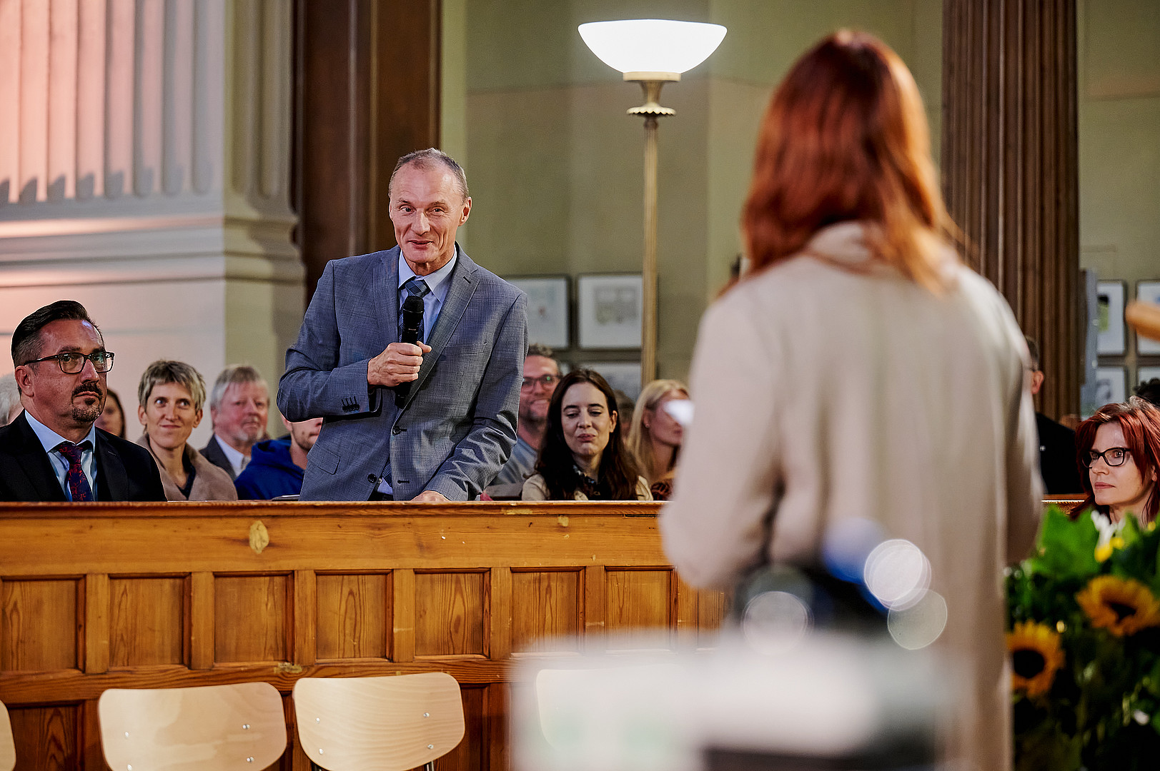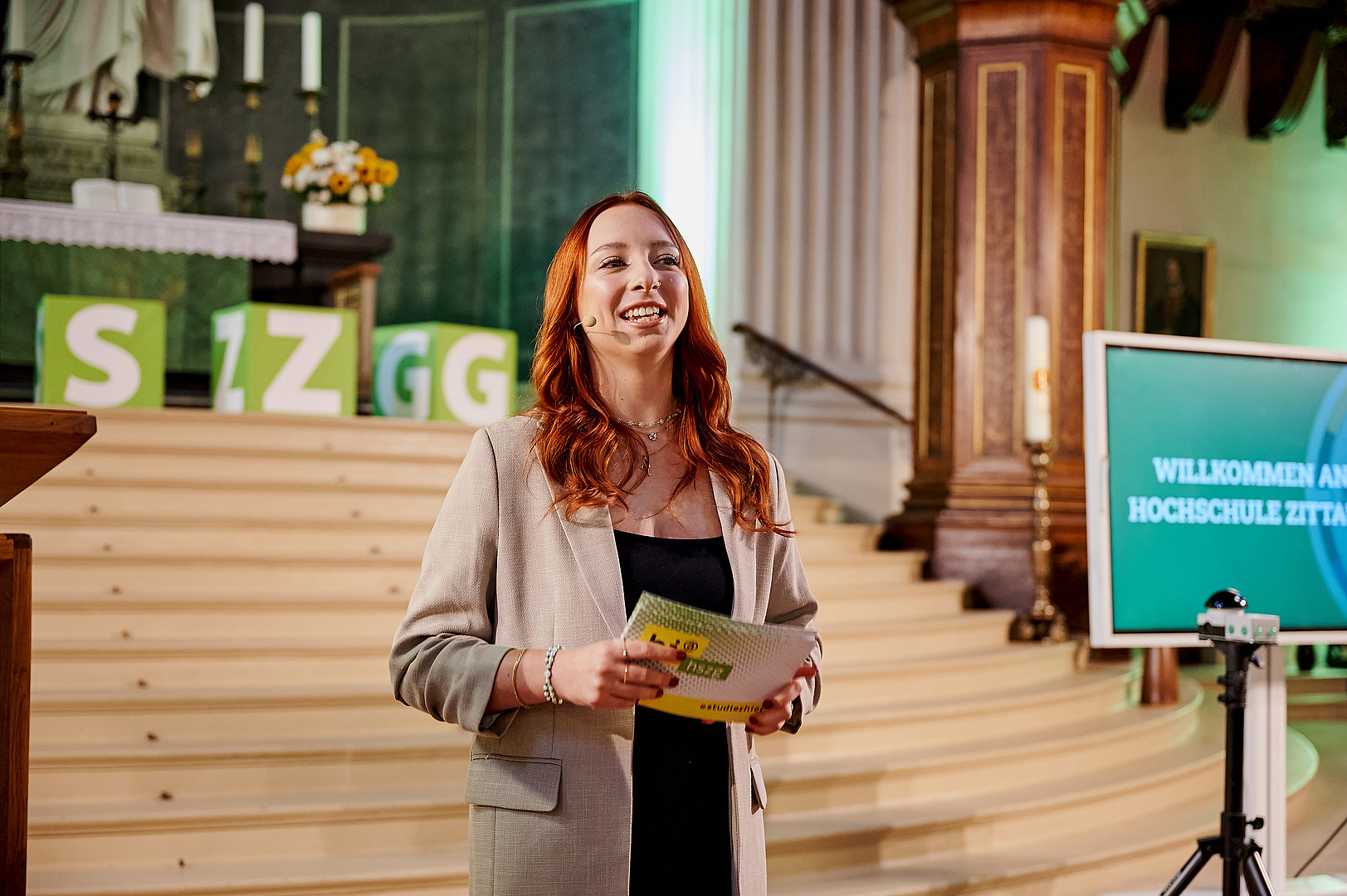Die anschließende Feierstunde wurde von Aileen Baumgärtner moderiert. Die Master-Studentin im Studiengang Management im Gesundheitswesen führte charmant durch das vielseitige Programm, das mit den Grußworten des Zittauer Oberbürgermeisters Thomas Zenker und der Pfarrerin, Frau Arne Mehnert, eingeleitet wurde.