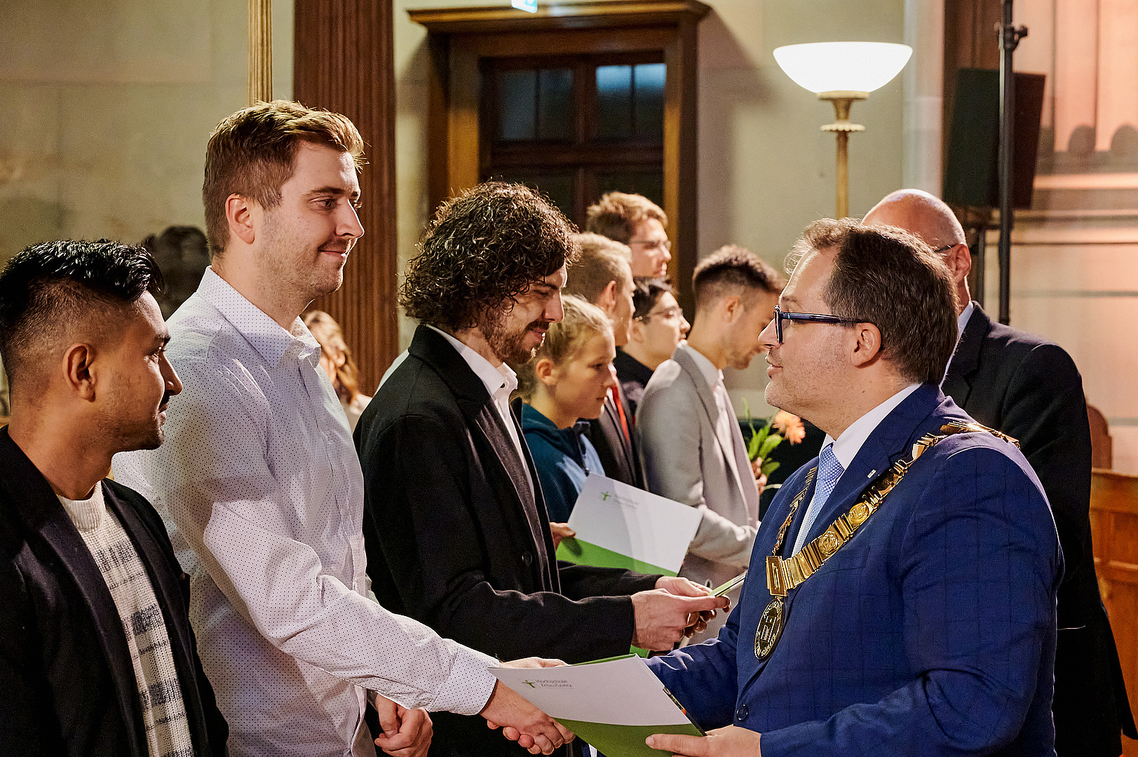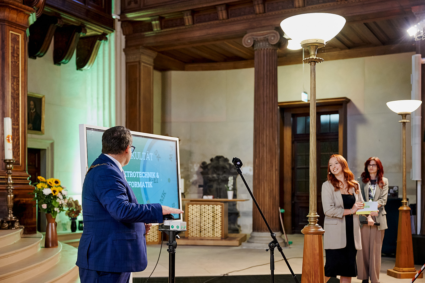 Neben der Vergabe des DAAD-Preises 2024 für hervorragende Leistungen ausländischer Studierender an Kasachin Zhaniya Pirmoldayeva durch die Prorektorin Bildung und Internationales Prof. Sophia Keil und der Verleihung des Preises für besonderes fachliches und soziales Engagement ausländischer Studierender des Fördervereins der Hochschule Zittau/Görlitz e. V. an Polin Nina Wrzesinska durch den Vorsitzenden Mario Linack, rundete die Vergabe der diesjährigen Deutschlandstipendien sowie die Festrede des Vorsitzenden des Hochschulrates Prof. Dr.-Ing. Welf-Guntram Drossel das abwechslungsreiche Programm ab.