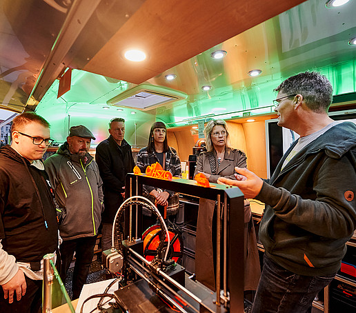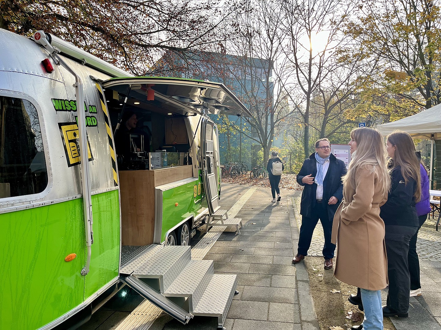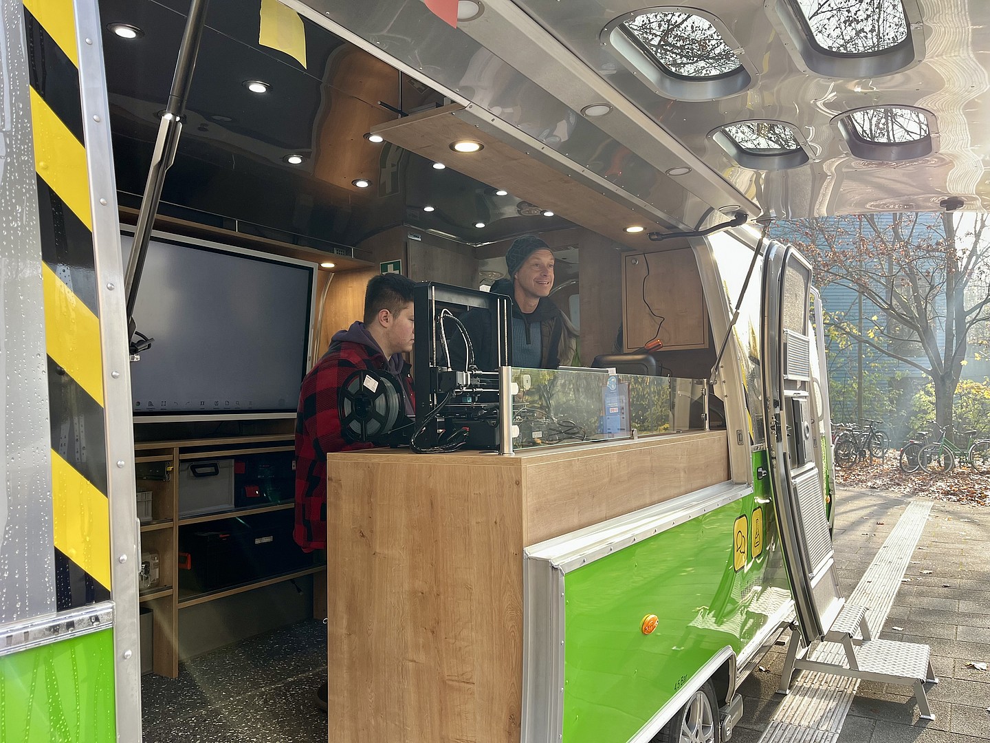 Am Mittwoch, den 06. November 2024, 09.30-11.00 Uhr gastierte der mobile Lernort auf dem Görlitzer Campus der HSZG. Der Rektor lud dabei alle Hochschulmitglieder herzlich ein, das rollende Labor in Görlitz zu besichtigen, modernen Technologien auszuprobieren und mit den Verantwortlichen ins Gespräch zu kommen.