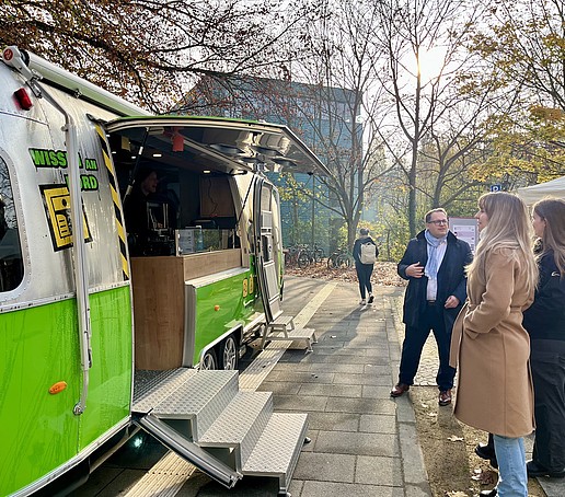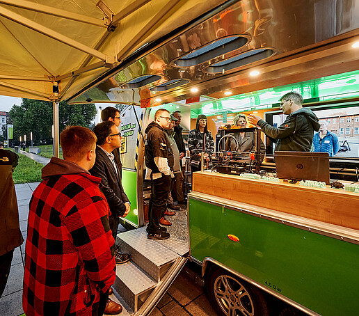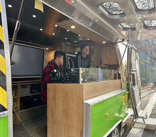 Der Mobile Lernort wird im Wintersemester 2024/2025 schrittweise eingeführt und macht künftig regelmäßig an Schulen und außerschulischen Lernorten Halt.