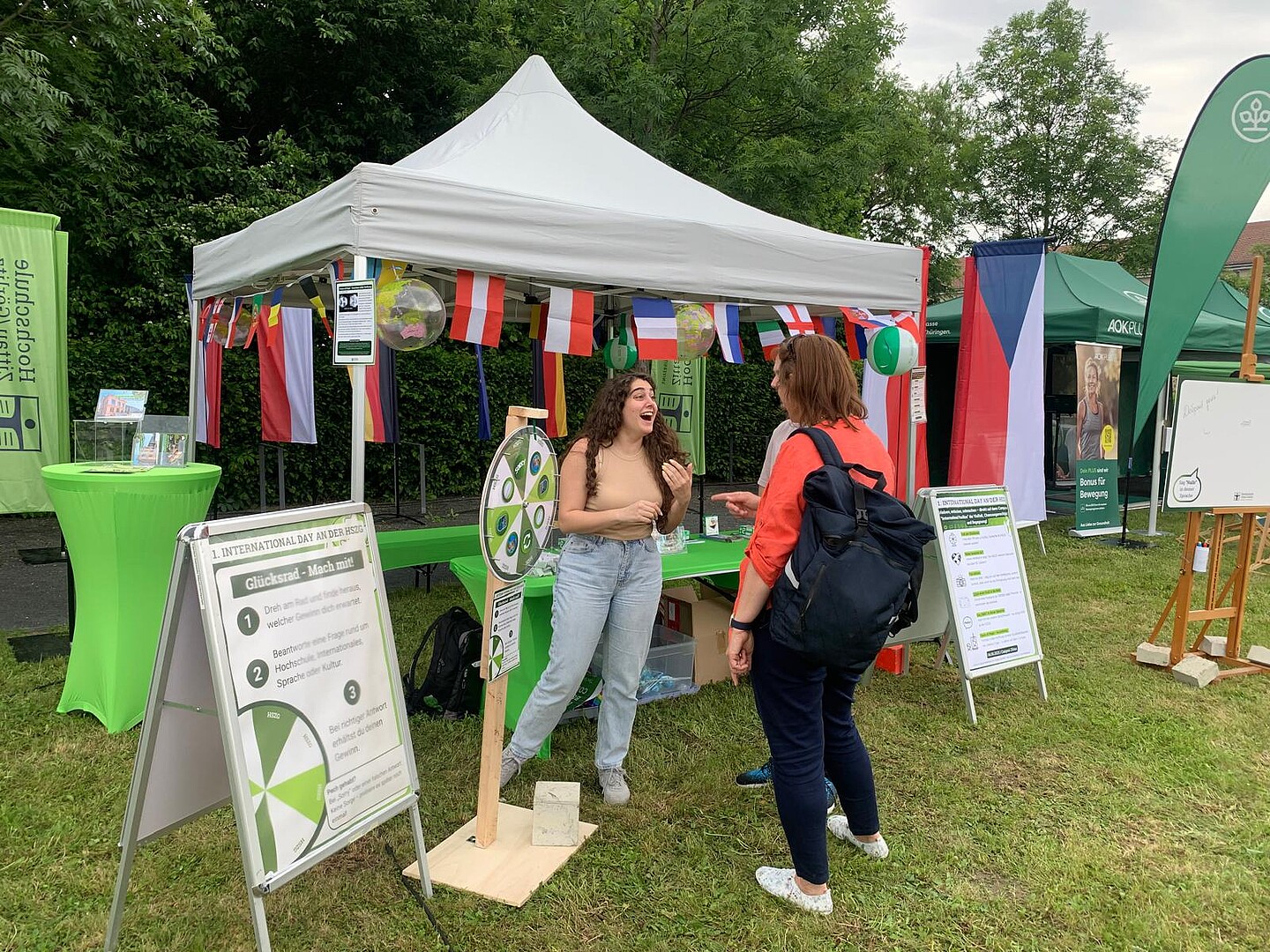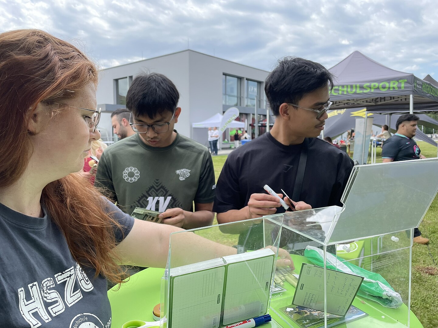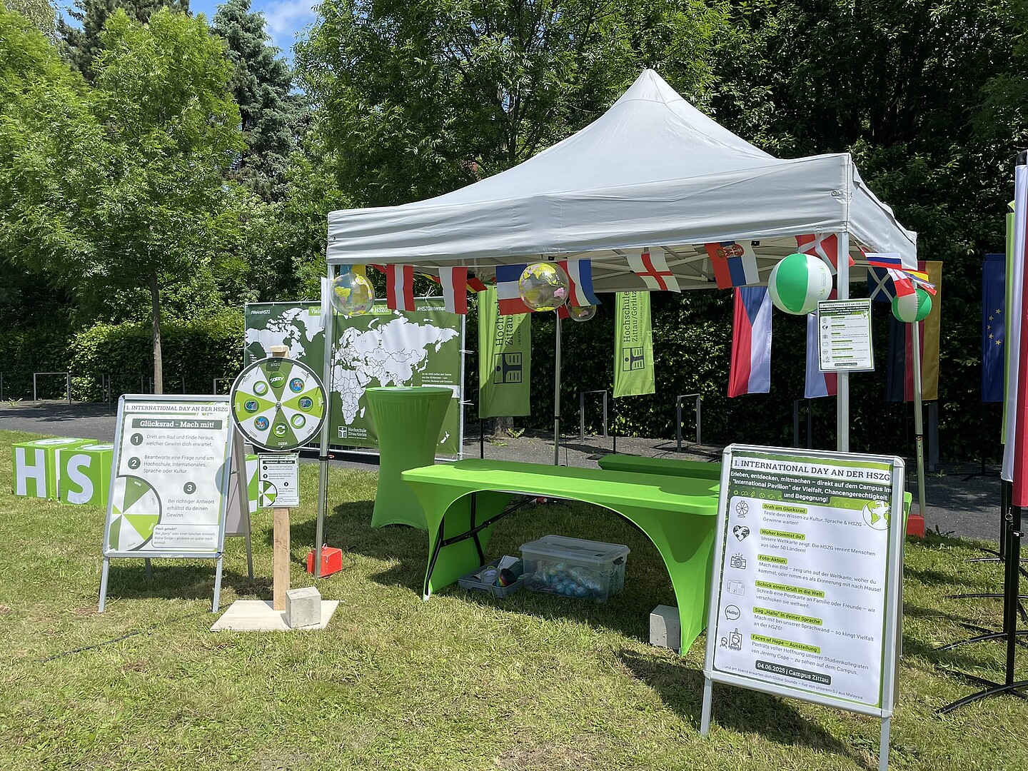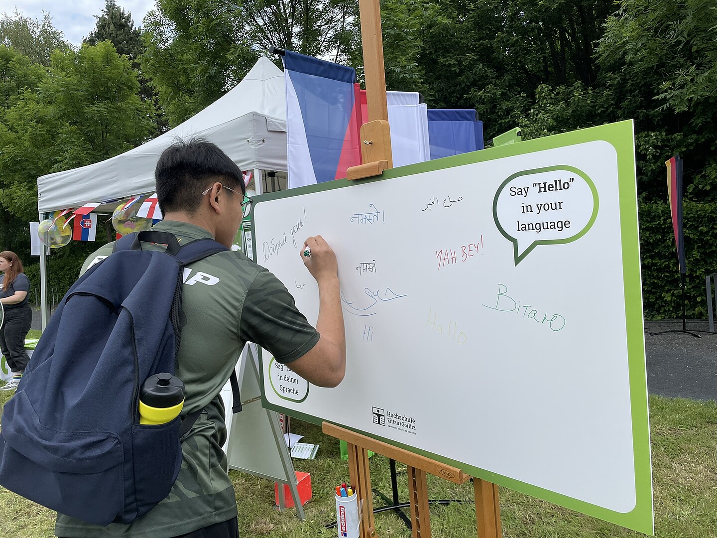 Ein weiteres Highlight war das Glücksrad mit Fragen rund um Studium, Sprache, Kultur und Internationalität – zum Mitraten, Lachen oder einfach zum Gespräch ins Rollen bringen. Wer mochte, konnte an der Postkartenstation „With love from HSZG“ Grüße in alle Welt versenden oder an der großen Tafel „Say hello in your language“ Begrüßungen in verschiedenen Sprachen hinterlassen – ein sichtbares Zeichen für Offenheit und gelebte Mehrsprachigkeit.
