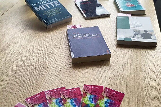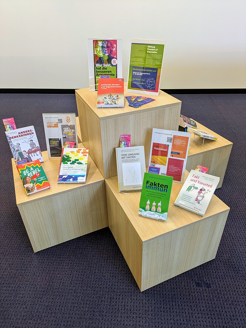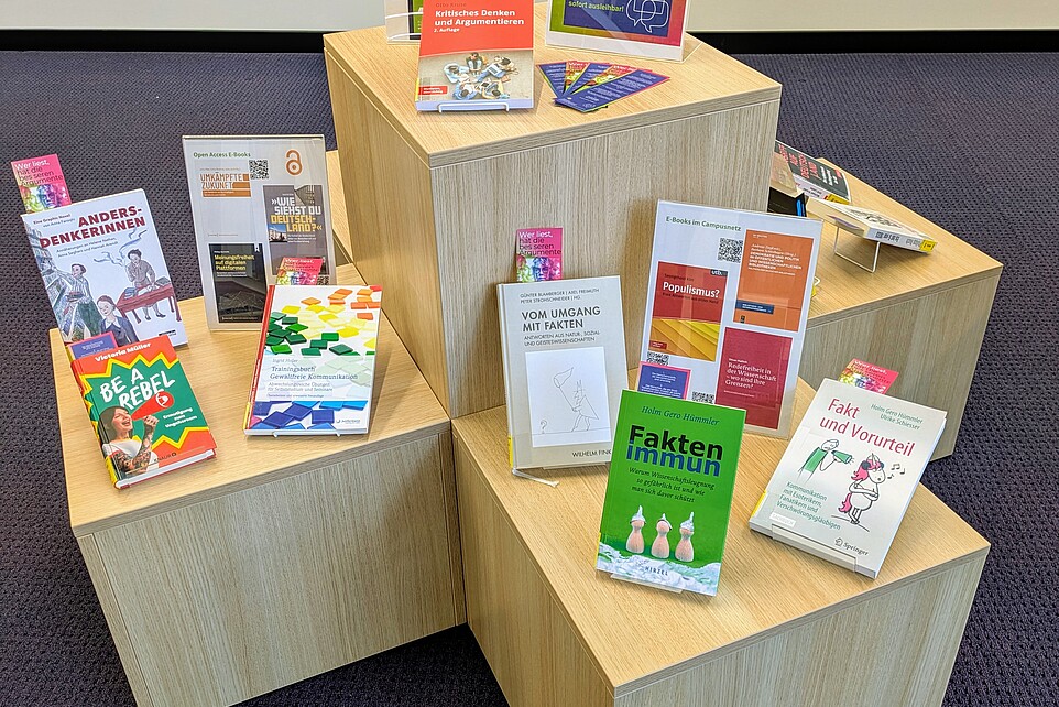 In der Hochschulbibliothek gibt es in Görlitz und Zittau jeweils eine kleine Medienausstellung rund um die Themen Vielfalt, demokratische Prozesse und Meinungsbildung.