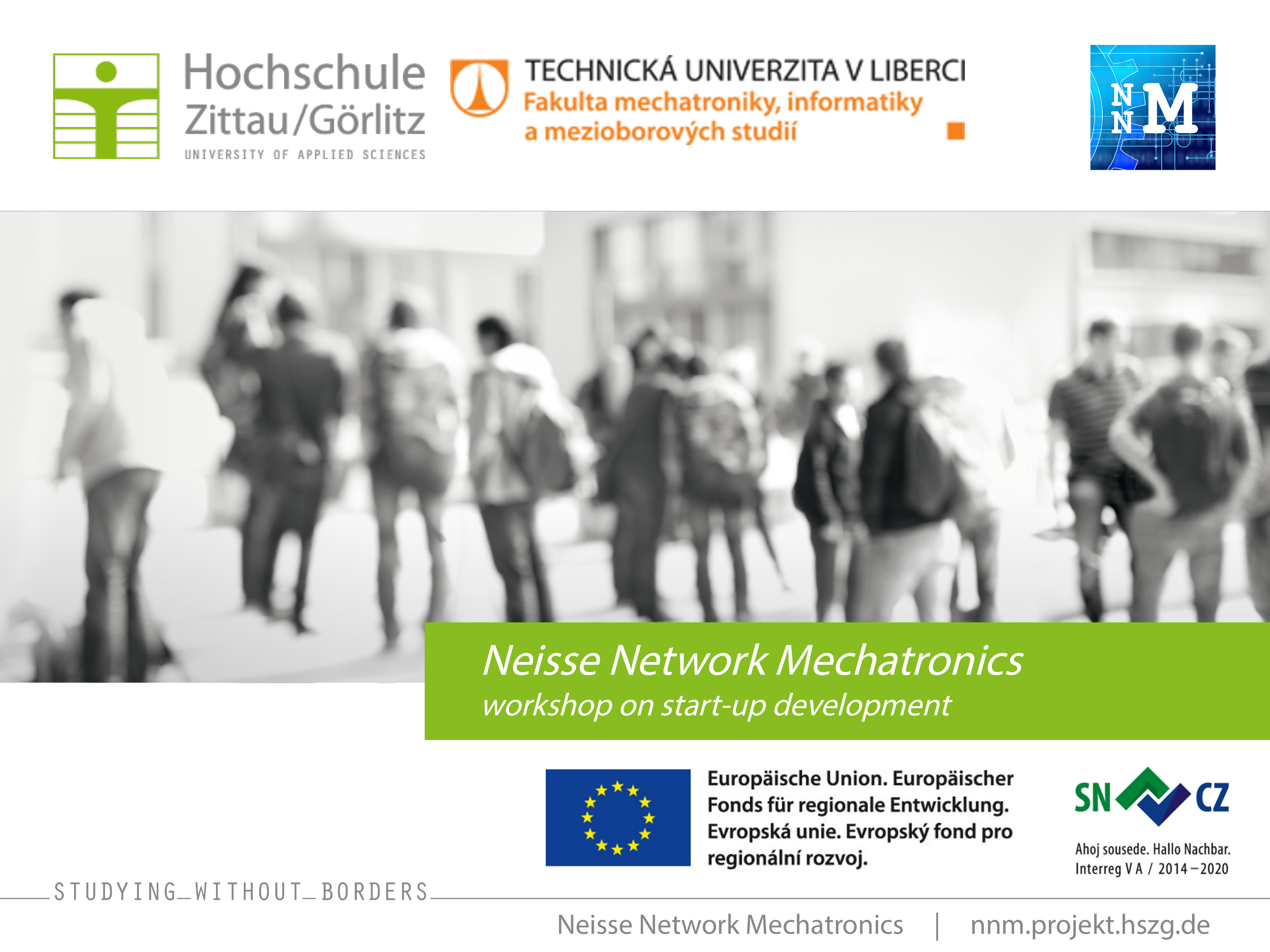 Der Workshop war Teil des grenzübergreifenden und EFRE-geförderten Projektes „Entwicklung eines grenzübergreifenden studienintegrierten Netzwerks zur Förderung der Unternehmensbildung“ / „Rozvoj přeshraniční akademické sítě pro podporu vzniku podniků“, welches von der Technischen Universität in Liberec und der Hochschule Zittau/Görlitz im Rahmen des Kooperationsprogramms zur Förderung der grenzübergreifenden Zusammenarbeit zwischen dem Freistaat Sachsen und der Tschechischen Republik 2014-2020 durchgeführt wird.