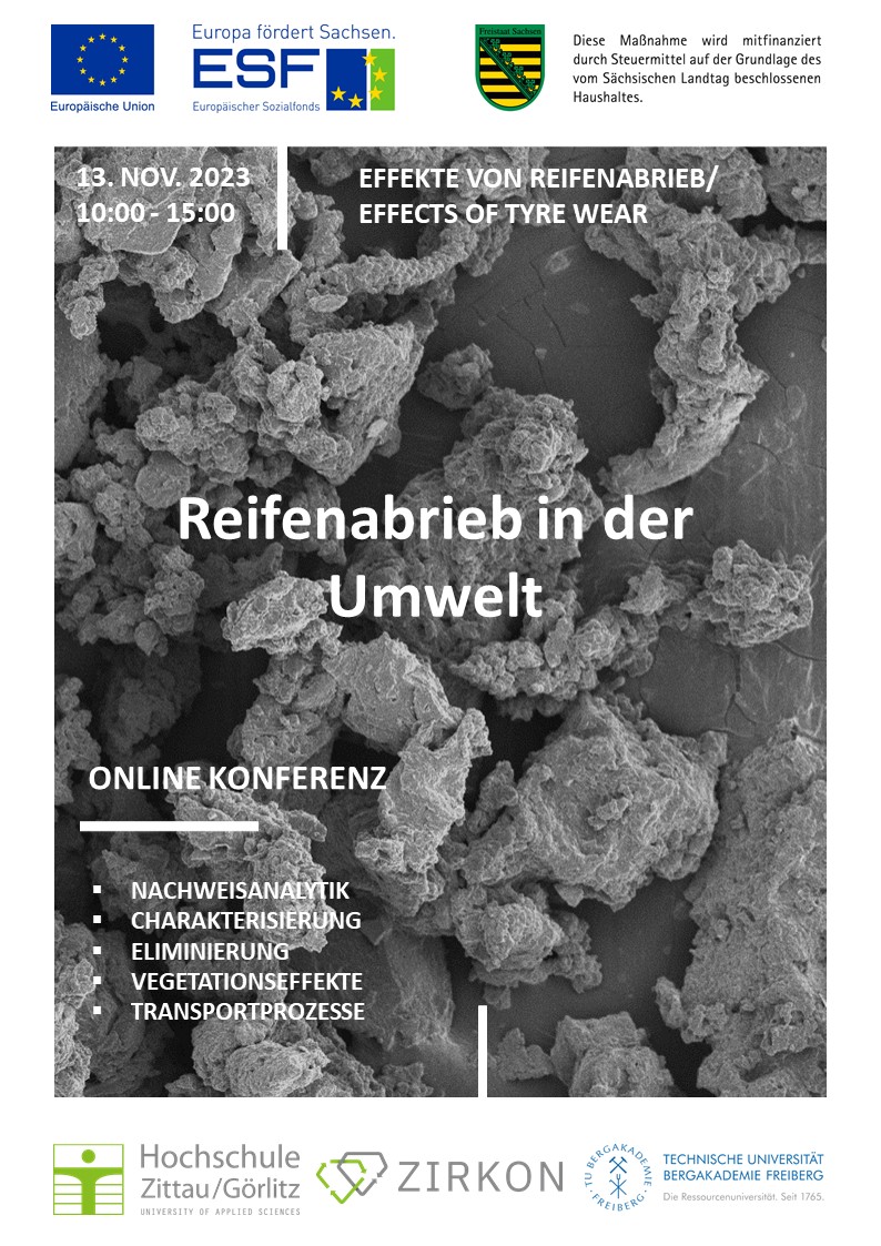 Der Workshop wird im Rahmen des ESF-geförderten Nachwuchsforscherprojektes „Effekte von Reifenabrieb" ausgetragen. Die Themenschwerpunkte umfassen: Analytik, Elimination, Monitoring, Verlagerung und Degradation von Reifenabrieb, sowie dessen Einfluss auf Böden und Pflanzen.