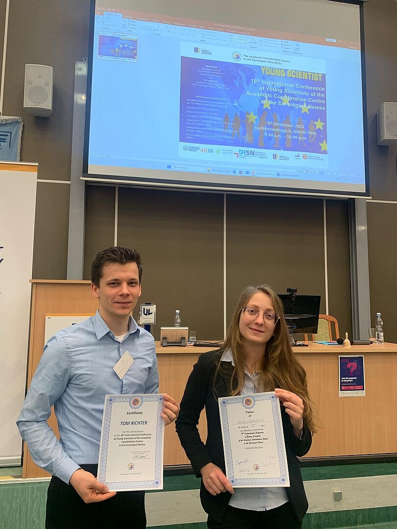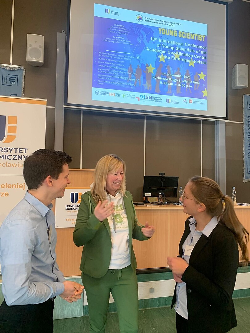 Die Hochschule Zittau/Görlitz (HSZG) war Anfang November 2025 zu Gast im polnischen Jelenia Góra – anlässlich der 18. Young Scientists Konferenz des Academic Coordination Centre (ACC). Die internationale Konferenz von Nachwuchswissenschaftlerinnen und Nachwuchswissenschaftlern wurde – wie in den Vorjahren – von der Wirtschaftsuniversität Breslau und dem Akademischen Koordinationszentrum in der Euroregion Neisse–Nisa–Nysa (ACC) organisiert.