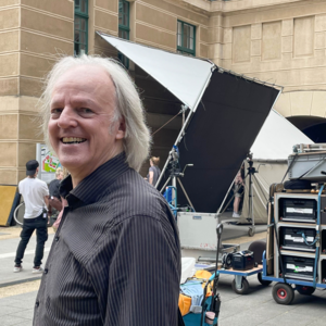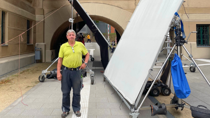 Michael Otto, langjähriger Hausbetreuer am Görlitzer Standort, hat während seiner über 30 Dienstjahre an der HSZG schon viel erlebt. Doch der kürzliche Filmdreh stellte selbst für ihn eine besondere Premiere dar. Bereits im Vorfeld zeigte er dem Team die Gebäude am Görlitzer Campus und unterstützte bei der Auswahl der optimalen Drehorte. Am Drehtag sorgte er dafür, dass alles reibungslos ablief. Er stellte den nötigen Strom bereit, koordinierte den Zugang zu den Räumlichkeiten und stand bei technischen Fragen stets zur Verfügung.