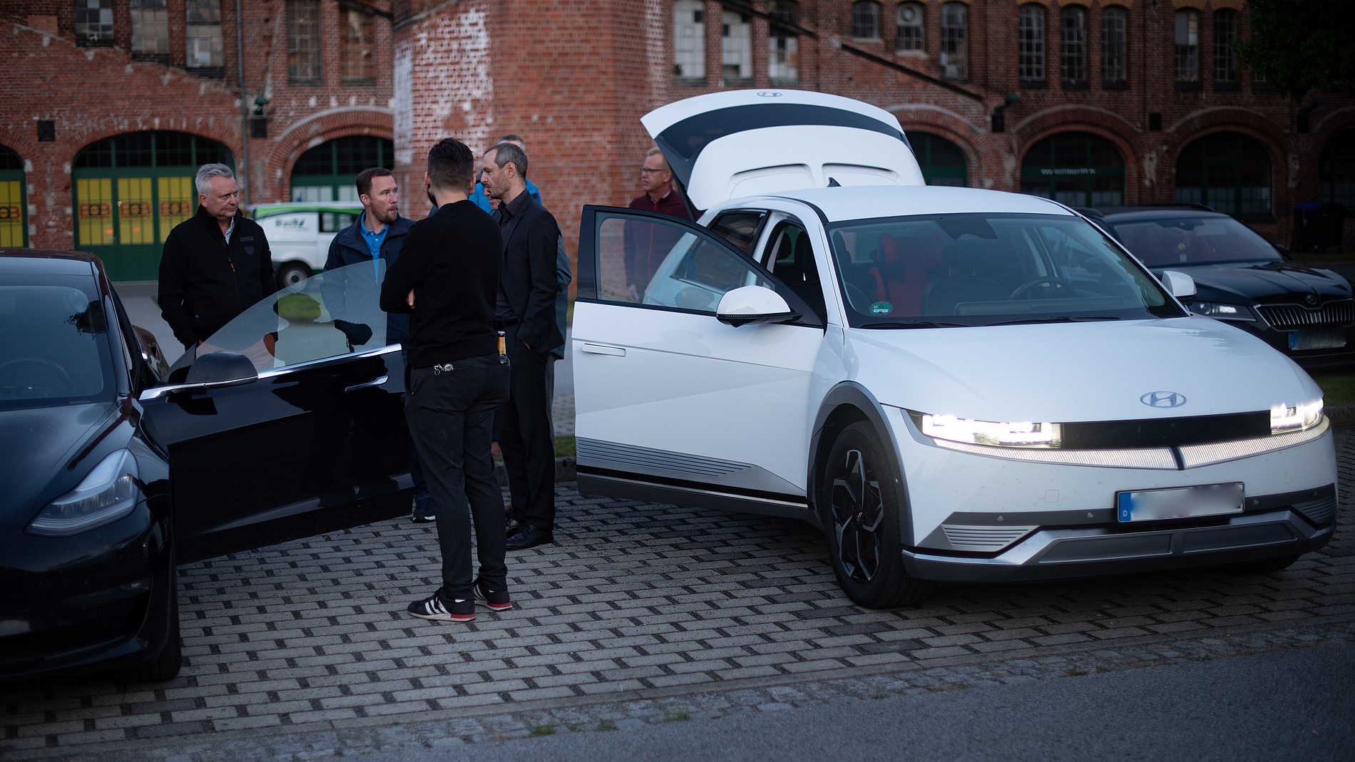 Zudem standen schicke und spannende E-Autos auf dem Parkplatz. Man konnte mit einem Tesla Model 3 und einem Hyundai Ioniq 5 auf Tuchfühlung gehen.