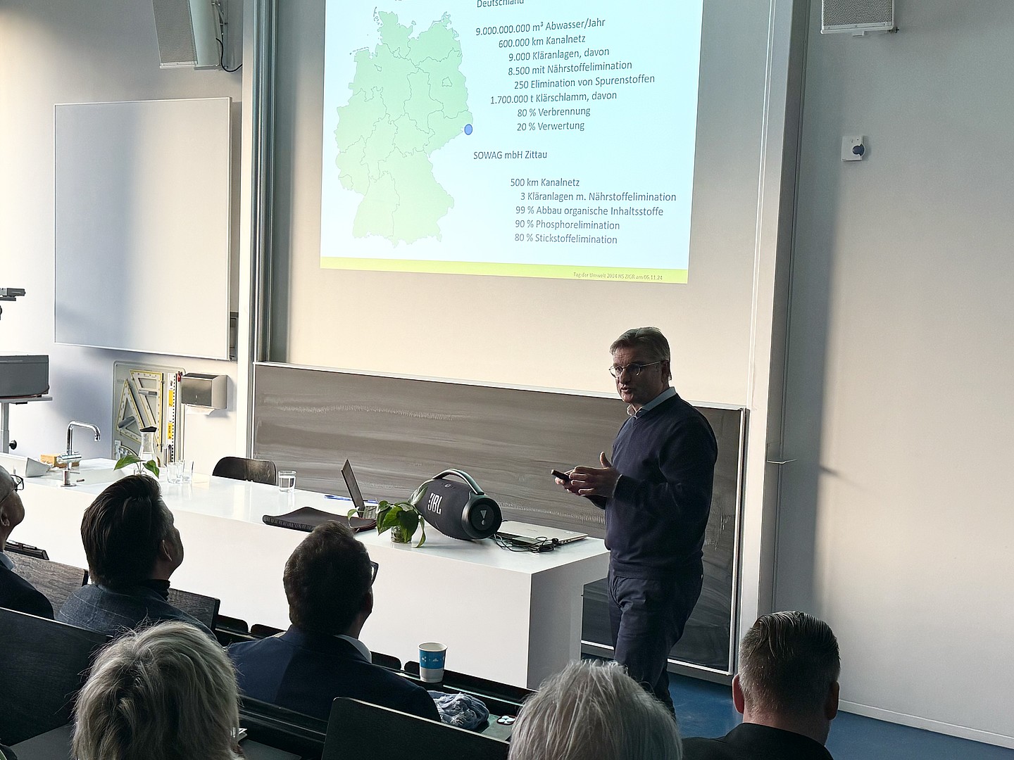 Alljährlich findet im November der Tag der Umwelt an der Hochschule Zittau/Görlitz statt. In diesem Jahr stand alles unter dem Zeichen des Nachhaltigkeitsziels 6 der Vereinten Nationen Sauberes Wasser und Sanitäreinrichtungen für alle. Durch extreme Trockenheit und steigende Temperaturen auf der einen und Starkregenereignisse auf der anderen Seite stehen wir auch hier in der Region Zittau vor enormen Herausforderungen. Wie gehen wir mit diesen klimatischen Veränderungen um? Wie schützen wir das kostbare Gut Wasser? Und welche Lösungen gibt es für eine nachhaltige Nutzung?