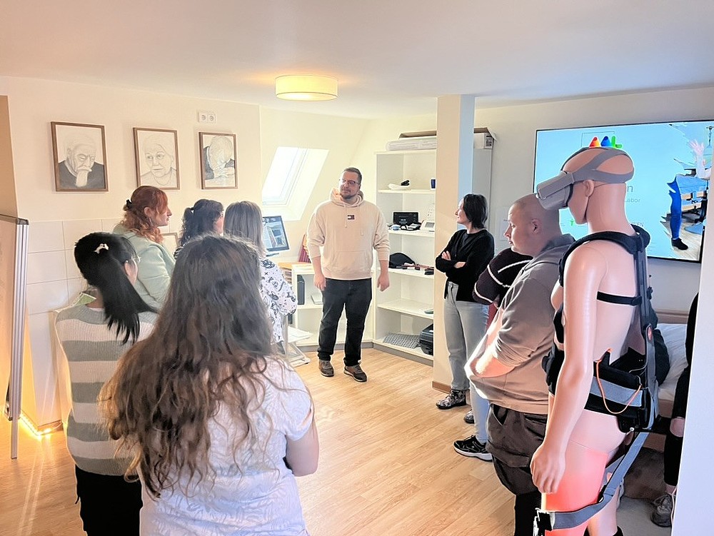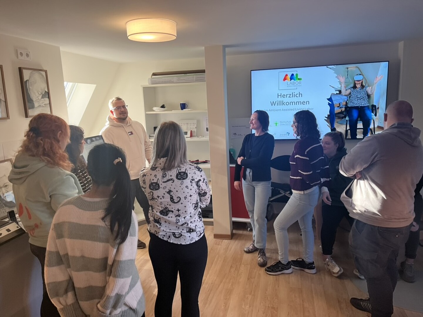 Am vergangenen Donnerstag, dem 24. Oktober 2024, besuchte eine Pflegeklasse der Euroakademie Görlitz das Ambient-Assisted-Living (AAL)-Labor des GAT-Instituts. Die Exkursion fand im Rahmen des Lernfeldes „Rehabilitation“ und des Themas „Wohnraumanpassung und Hilfsmittelversorgung sowie technische Hilfsmittel“ statt. Ziel des Besuchs war es, den zehn angehenden Pflegekräften praxisnahe Einblicke in die neuesten Assistenztechnologien zu ermöglichen.