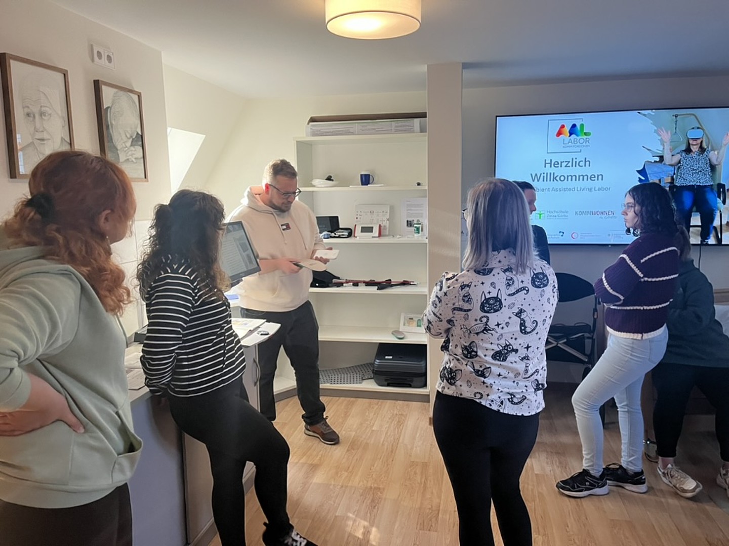 Das AAL-Labor gibt Pflegekräften in der Ausbildung einen Einblick in aktuelle Assistenztechnologien, welche älteren Menschen im Alltag unterstützen oder die Pflegekräfte selbst in ihrer Arbeit entlasten können.