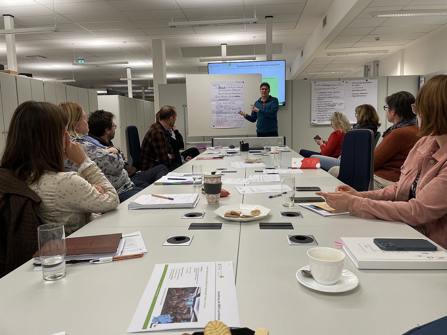 Beim zweiten Treffen der Werkstatt wurden erste Experimente zu den Forschungsschwerpunkten des DLR ausgewählt, die aus Sicht der Schulen im DLR_School_Lab der Hochschule Zittau/Görlitz angeboten werden sollen. Diese Auswahl umfasst ein breites Spektrum an Themen wie Robotik, IT und Sicherheit, Schwerelosigkeit, Brennstoffzellen und Leichtbau. Die Lehrkräfte äußerten zudem den Wunsch, gemeinsam in der Werkstatt Arbeitsmaterialien für die Vorbereitung, Durchführung und Nachbereitung der Experimente zu entwickeln. Gleichzeitig betonten sie die Wichtigkeit der Zuverlässigkeit in Bezug auf die Verfügbarkeit dieser Angebote für die Schulen.