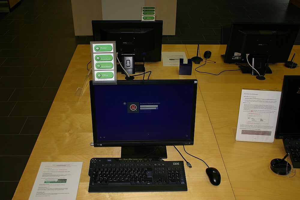 Ab sofort stehen an beiden Standorten in der Hochschulbibliothek zusätzliche Arbeitsplätze zur Verfügung, an denen das Herunterladen von elektronischen Büchern und Zeitschriftenartikeln, die Verwendung verschiedener MS-Office-Angebote sowie das Drucken möglich ist.